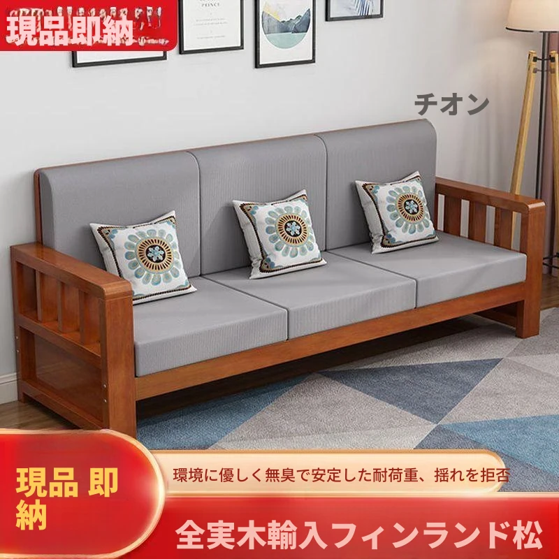 C!無垢材のソファセット 新中式デザイン 家庭用リビング 小型スペースに最適 シンプルで経済的な3人掛けソファ