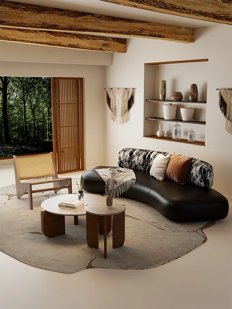 ハーフアーチ型デザインソファ|休憩エリアや会議、オフィス、モデルルーム、ホテルロビーに最適!おしゃれで快適な空間を演出し、訪れる人々に印象を与えます。
