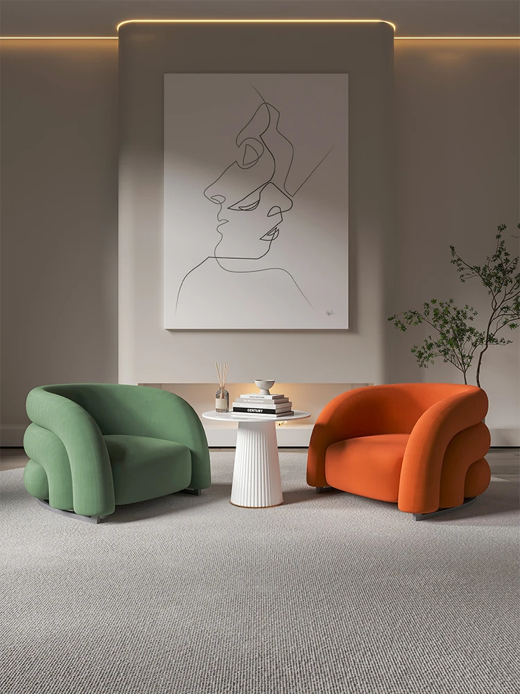 フィサンリ家の一人用ソファチェア|リビングにぴったり!イタリアンラグジュアリーの回転式リラックス虎椅子|シンプルでおしゃれなバルコニー用チェア!快適さとスタイルを兼ね備えた一品です。
