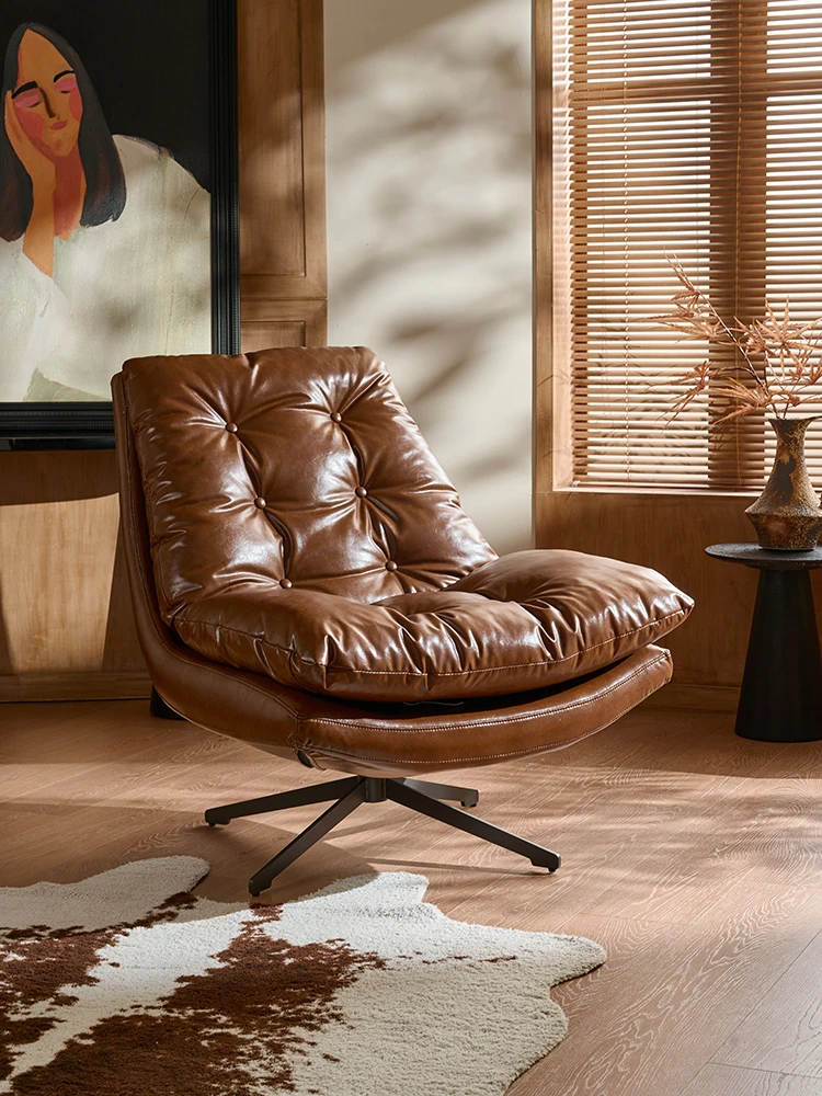 フィシャリ家 イタリアン本革一人掛けソファチェア リビング&バルコニー用 リラックスラウンジソファ レトロ&ラグジュアリーなデザインで、くつろぎのひとときを提供します!
