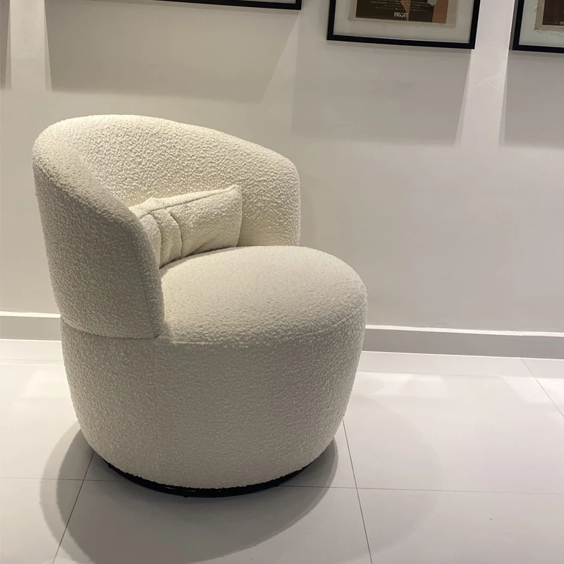 北欧風おしゃれラグジュアリー回転ファブリックソファチェア フランス風ラムウールカジュアルチェア アンティーククリーム色シングルチェアで、リラックスしたひとときをお楽しみください!