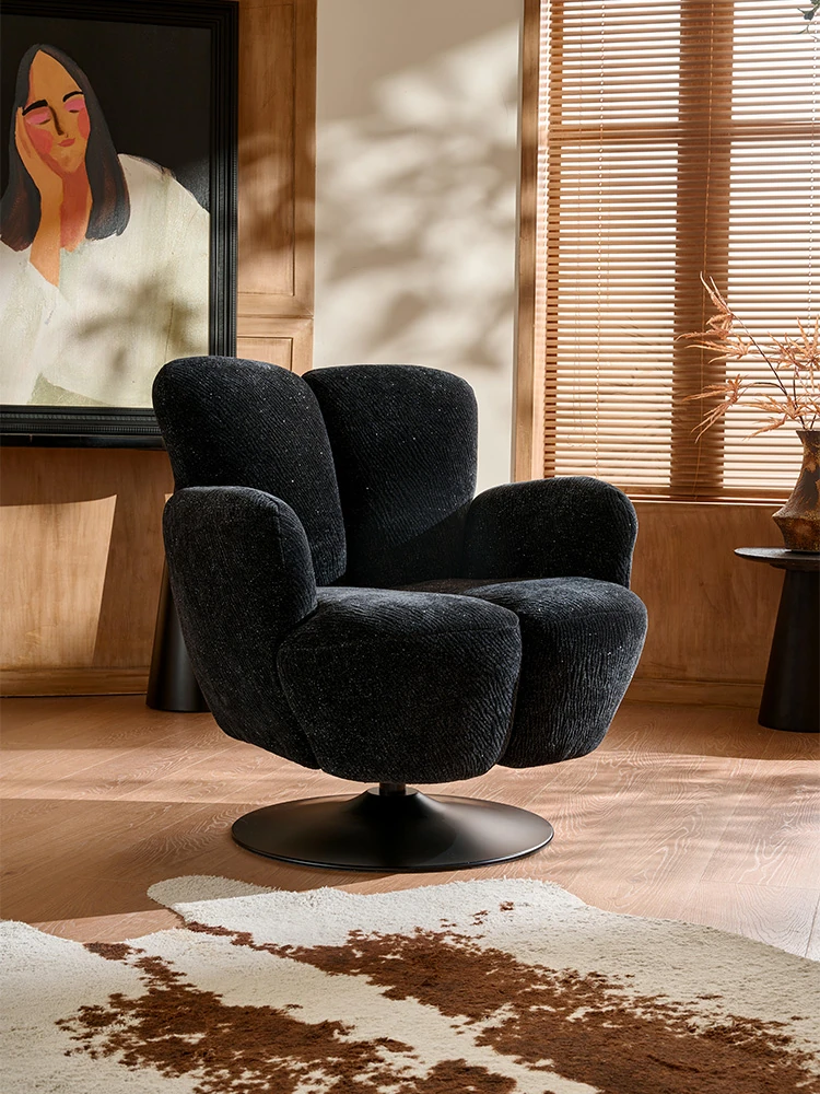 フィシャングリ家のデザイナー1人掛けソファ、イタリアンラグジュアリーなリビングやバルコニーに最適!リラックスできる回転式のアームチェアで、優雅なひとときをお楽しみください。