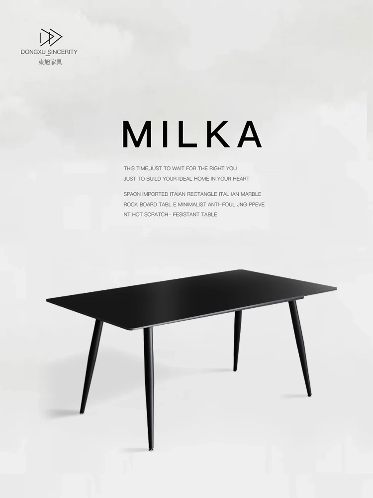 小紅薯デリフォンのイタリアンミニマルモダンブラックストーンダイニングテーブル - 小型住宅に最適なラグジュアリー感あふれるシンプルデザイン!長方形でスタイリッシュな食卓で、食事の時間を特別なひとときに。