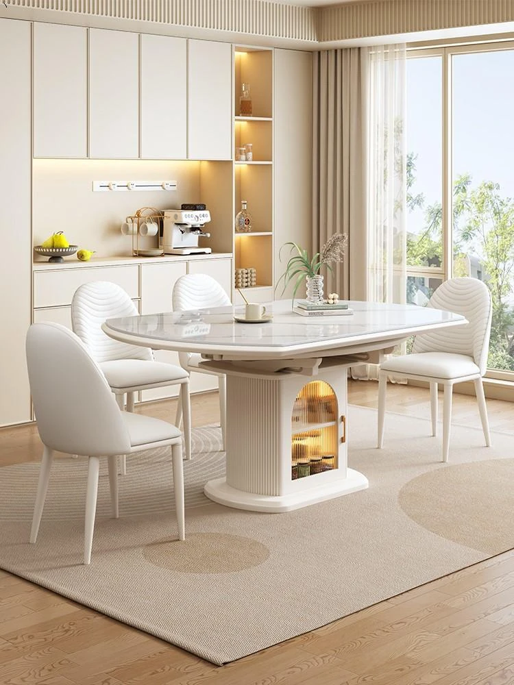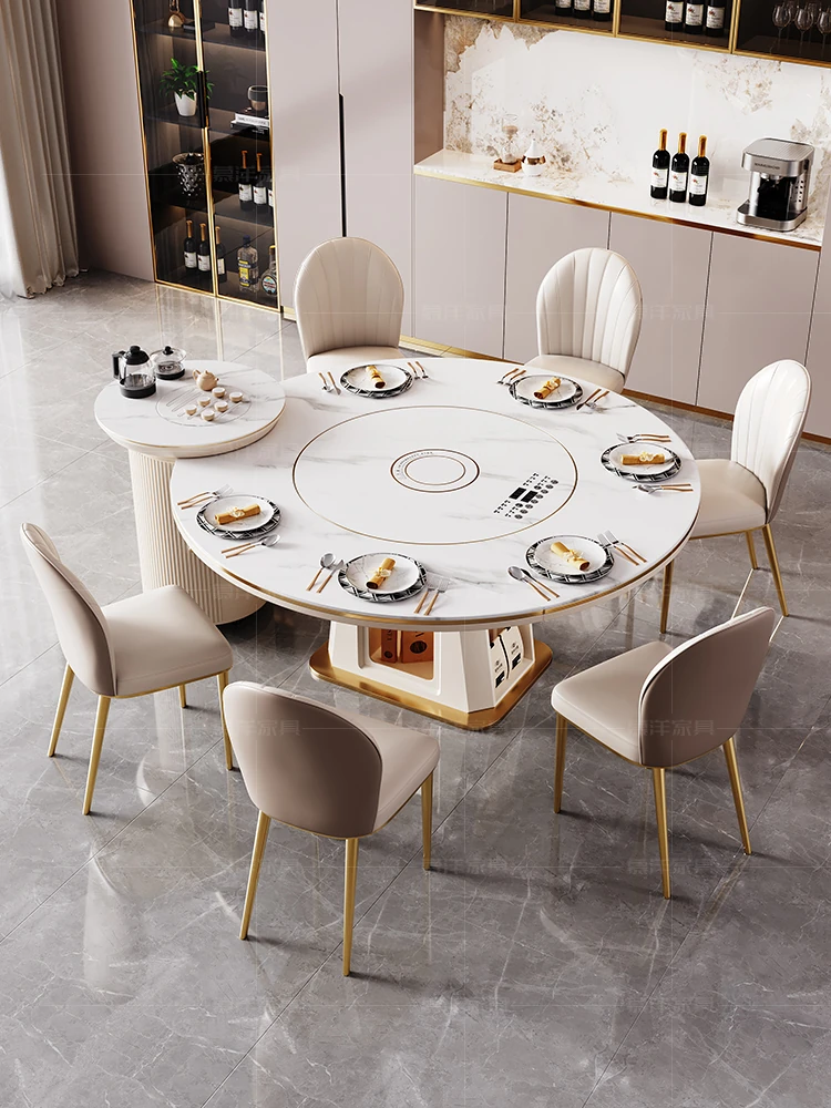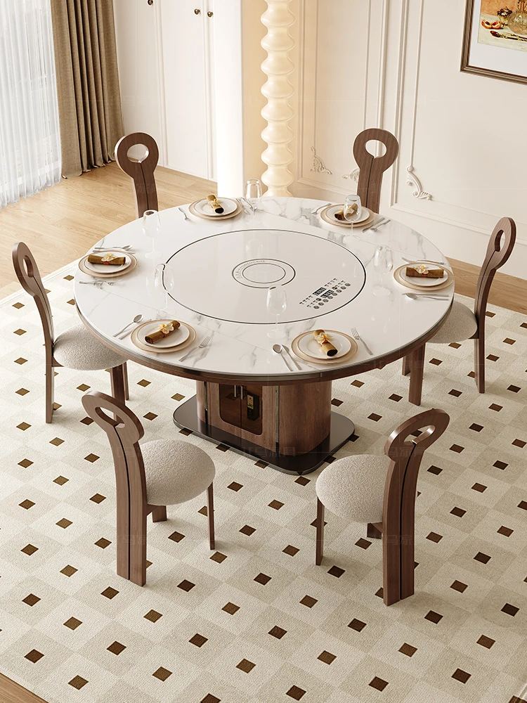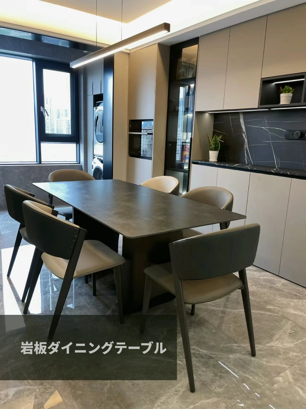 2025年新作!国補の岩板ダイニングテーブル&チェアセット - モダンでシンプルなデザイン、ラグジュアリーな雰囲気。多機能な円形&四角形の両用、さらにIHコンロ付きで便利さ抜群!