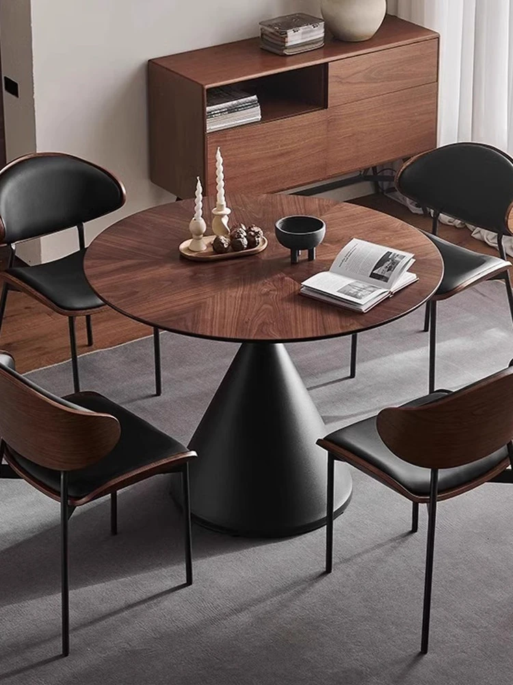 人気の天然木製ラウンドテーブル - 小型住宅に最適!高級デザイナーによるアルミ合金製のヴィンテージ風全托円卓。おしゃれで機能的なダイニング体験をお届けします。