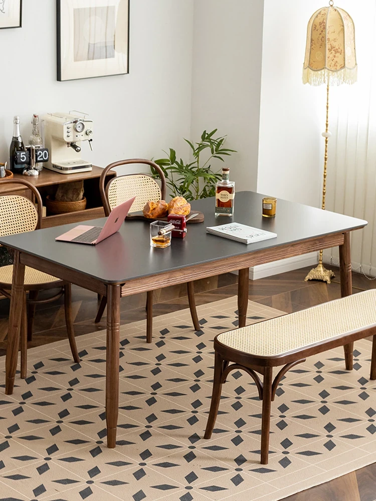 2025年新登场!北欧复古スタイルの無垢材ロックテーブル、家用小型リビングに最適な長方形デザイン。高級感あふれるダイニングテーブルで、特別なひとときを演出します!
