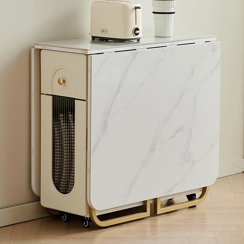 [香港送料無料] 小型実木岩板電磁調理器対応 折りたたみ式ダイニングテーブル&チェアセット モダンシンプル 拡張可能 家庭用ロングテーブル