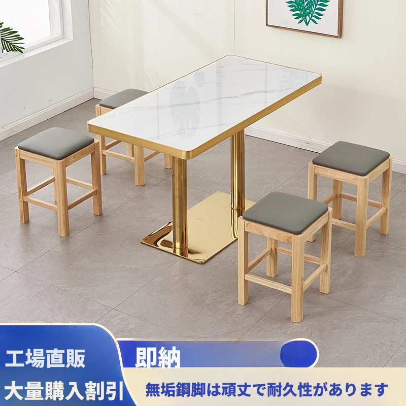 高級感溢れる実木製の快適なテーブル&チェアセット!飲食店やカフェに最適な小型テーブル(円形・角形)と金縁のスタイリッシュなデザインで、素敵な空間を演出します。おしゃれなミルクティー店やスナックショップにぴったり!