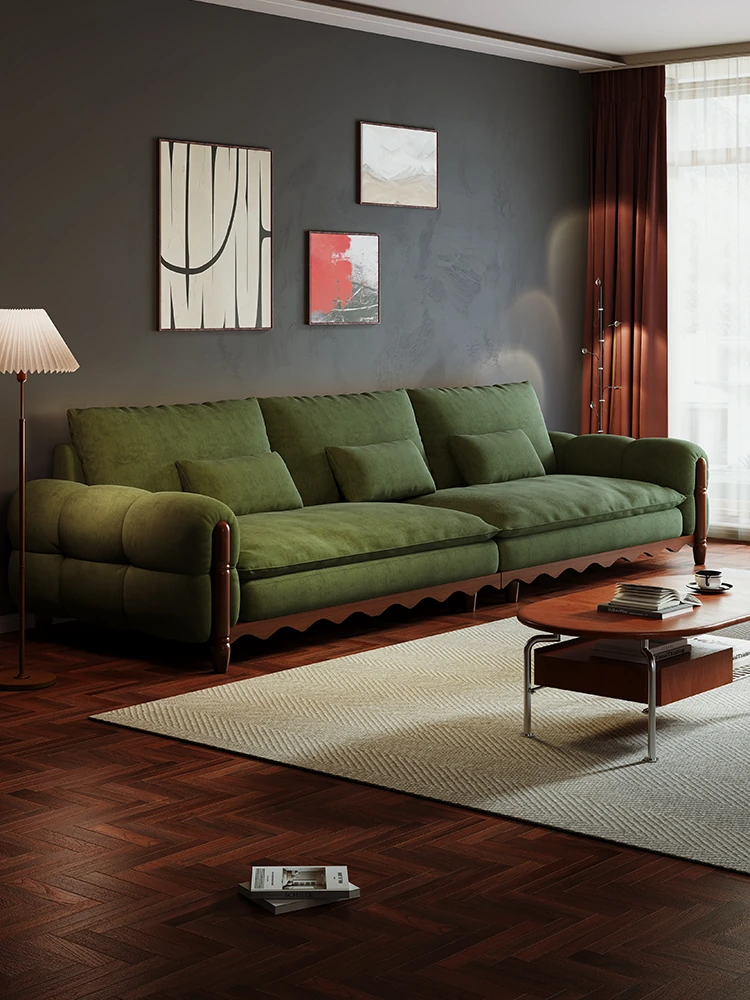 Government Subsidized Retro American Style Puff Cloud Fabric Sofa with Vintage Solid Wood High Legs and Piano Key Design