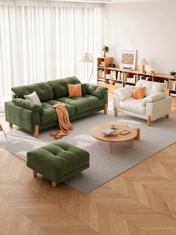 Government-Subsidized Pure Wood Cream Cloud Sofa - Modern Minimalist Scandinavian Japanese Retro Corduroy Sofa for Living Room, Perfect Blend of Comfort and Style!