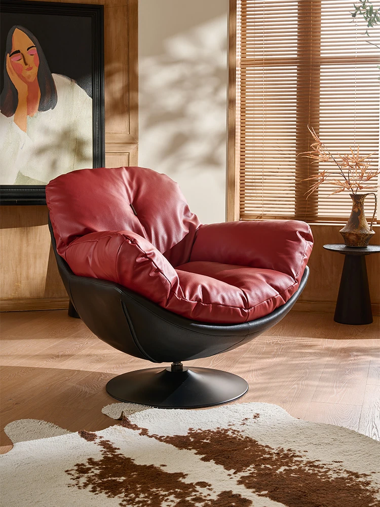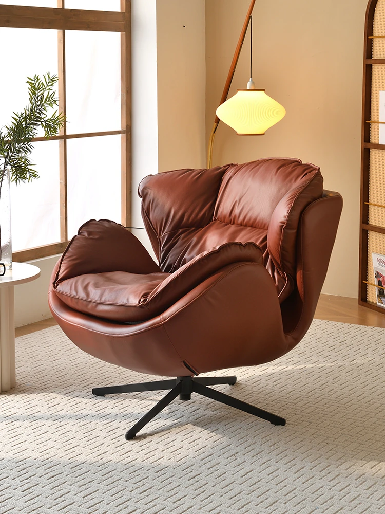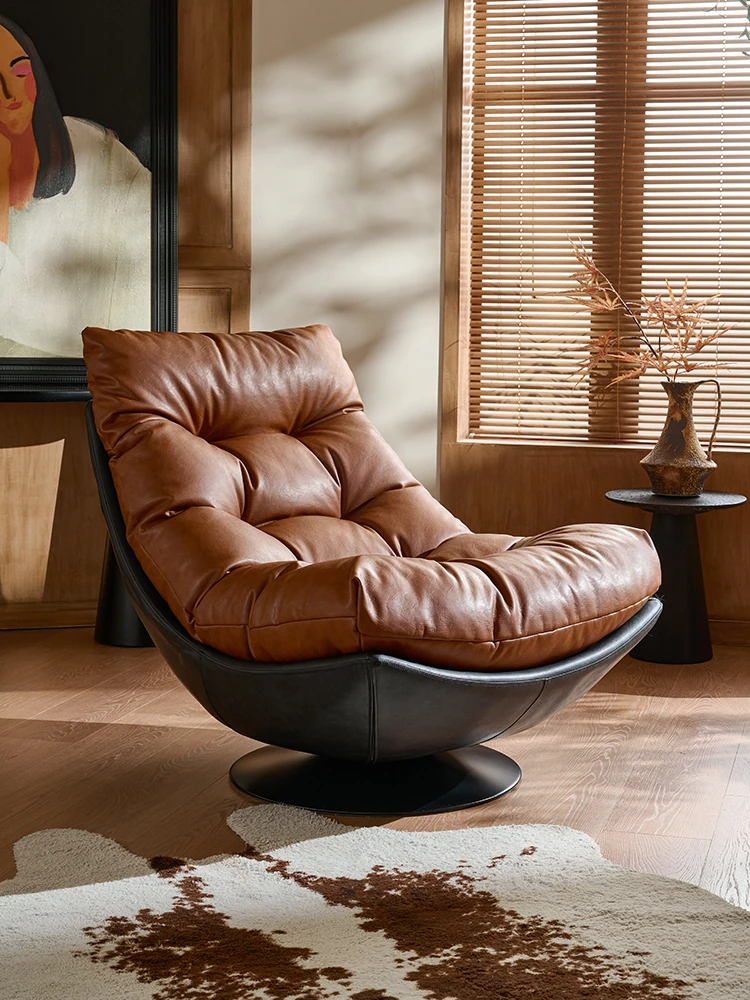 FiShangLi Designer Retro Leather Single Sofa Chair - Rotatable and Stylish for Living Room and Balcony, Perfect for Relaxing and Unwinding.