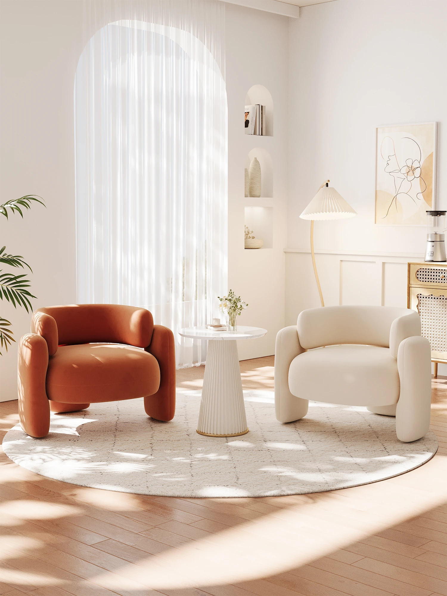 Creamy Luxe Single Sofa Chair – Perfect for Beauty Salons, Cozy Retreats, and Stylish Guesthouses. Ideal for Relaxation and Conversations, Complete with a Chic Tea Table Set.
