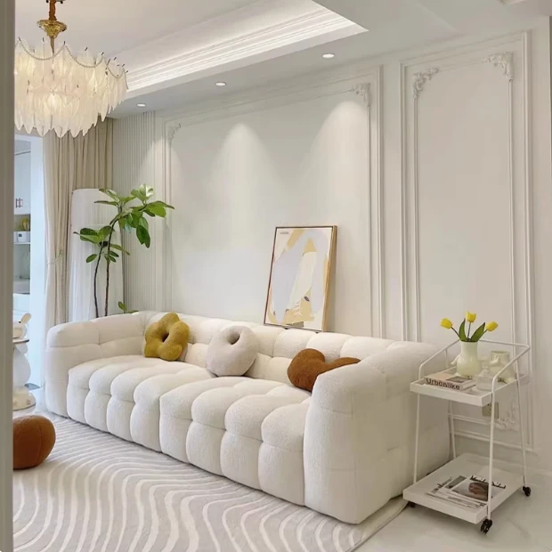 Chic Luxury Chenille Marshmallow Fabric Sofa – French Style Creamy Living Room Sofa for Beauty Salons and Fashion Stores