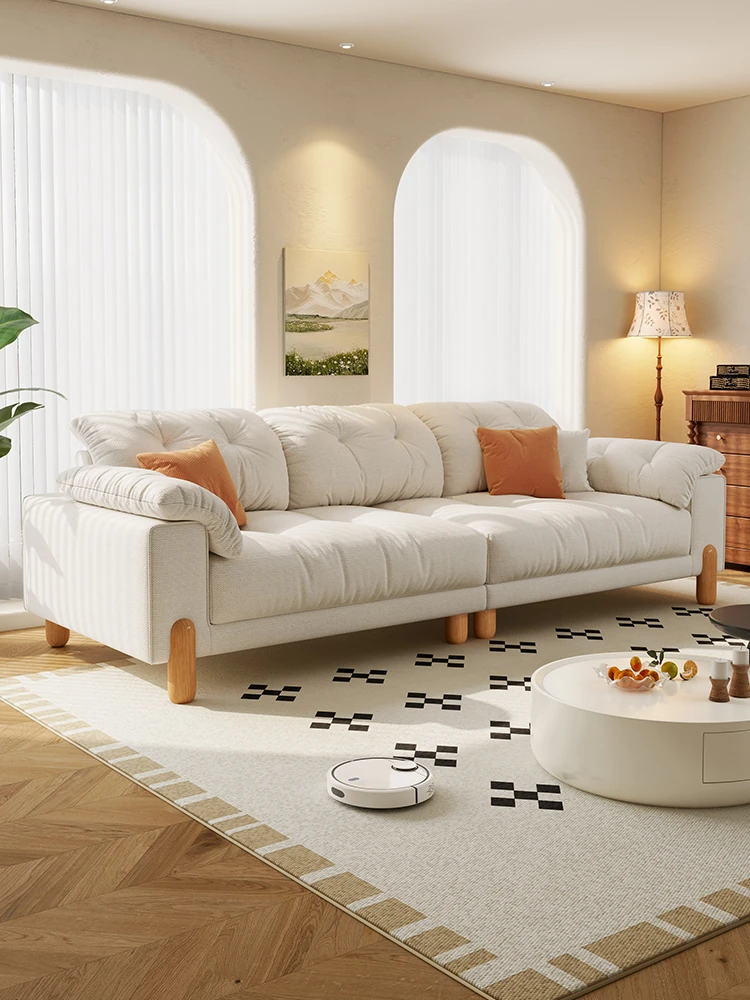 French Vintage Cream Puff Sofa - Chic Cloudy Biscuit Design for Living Room, Luxurious Chenille Material with Piano Key Aesthetics - Perfect for Trendy Spaces!
