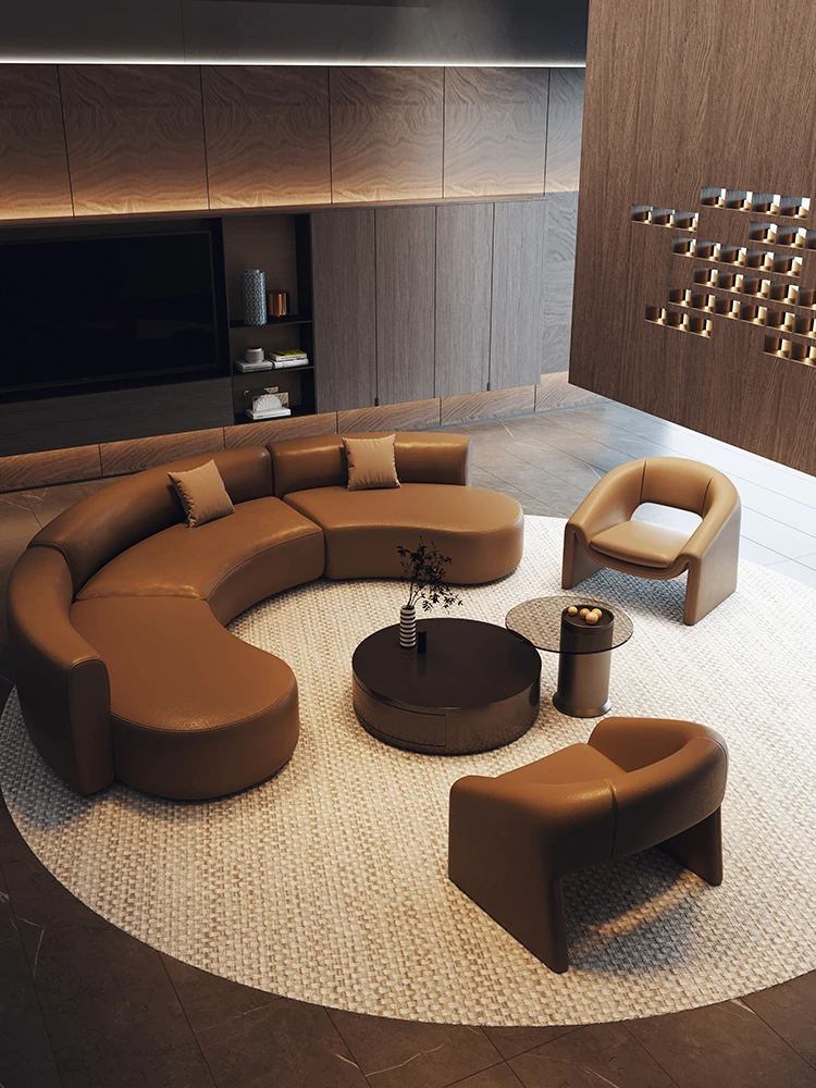 Curved Semi-Circular Sofa for Elegant Reception Areas - Perfect for Luxurious Hotel Lobbies, Sales Offices, Clubs, and Billiard Halls. Stylish Comfort for Modern Spaces!
