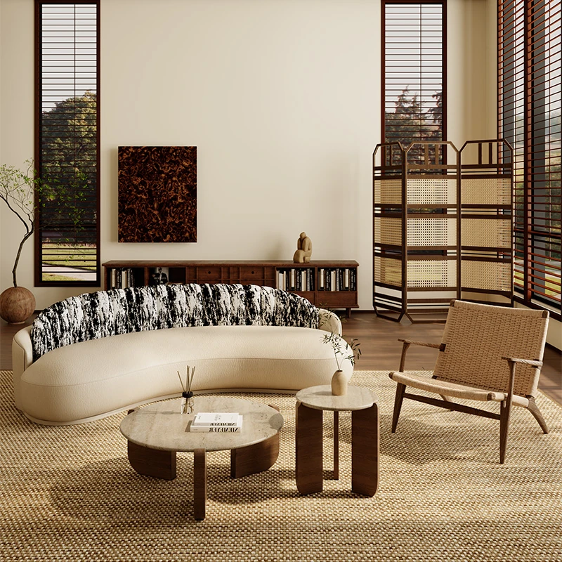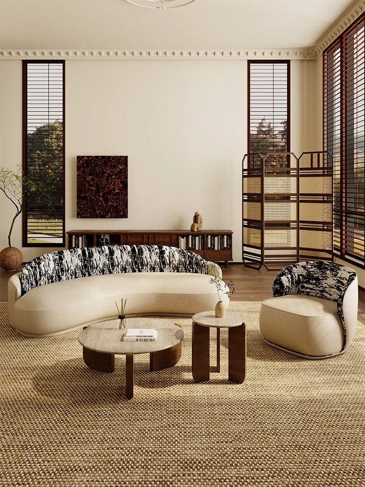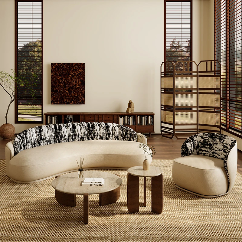 Curved Shaped Sofa for Reception Area - Elegant and Luxurious Design for Boutique Hotels, Beauty Salons, and Fashion Stores. Perfect for Creating a Stylish and Inviting Atmosphere!