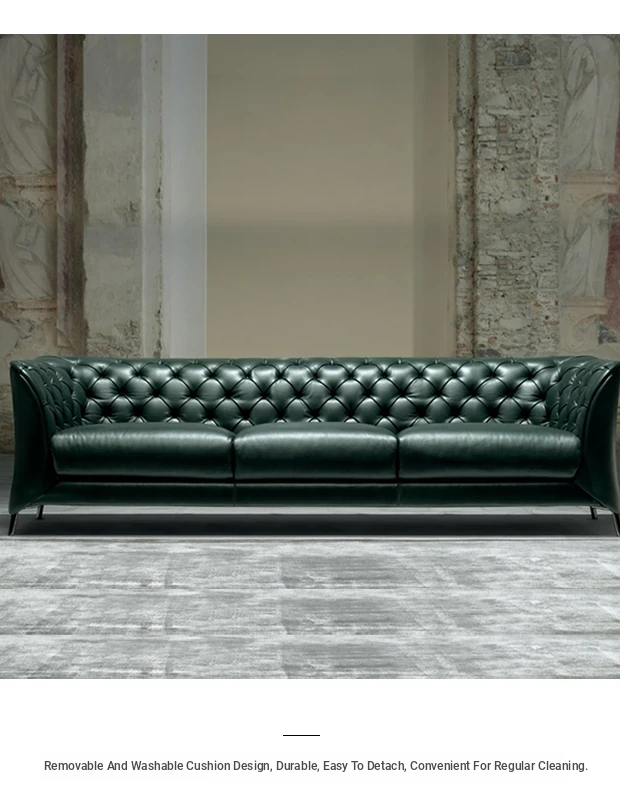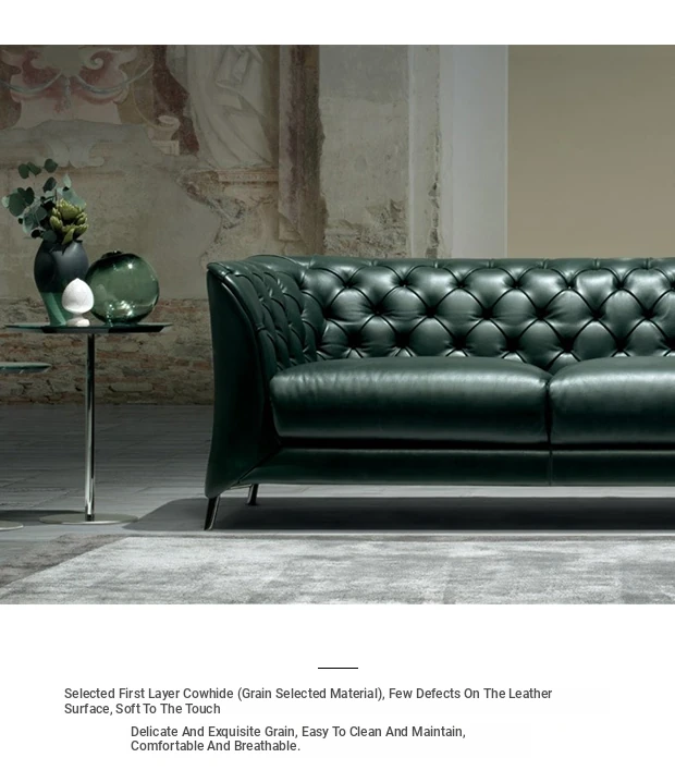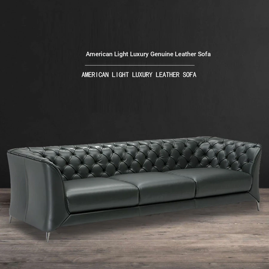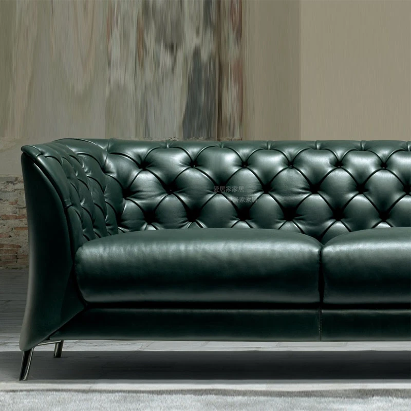 Italian Light Luxury Three-Seater Sofa | American Four-Person Genuine Leather Sofa with Oil Wax Finish | Dark Green Nordic Post-Modern Large Couch - Perfect for Stylish Living Spaces!