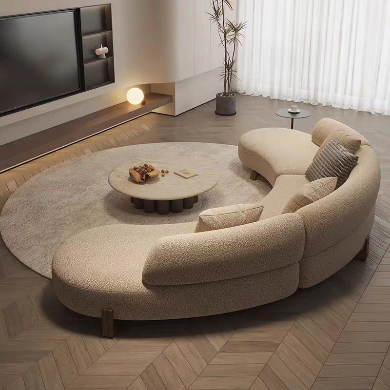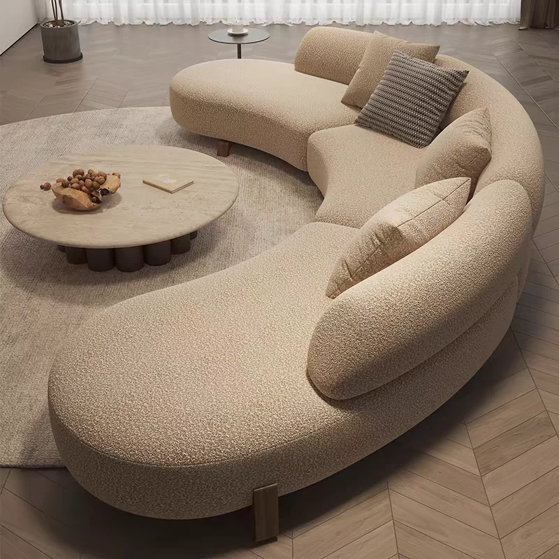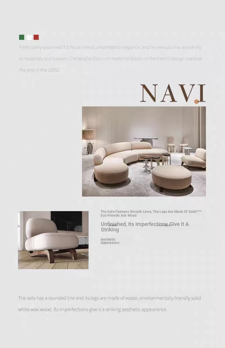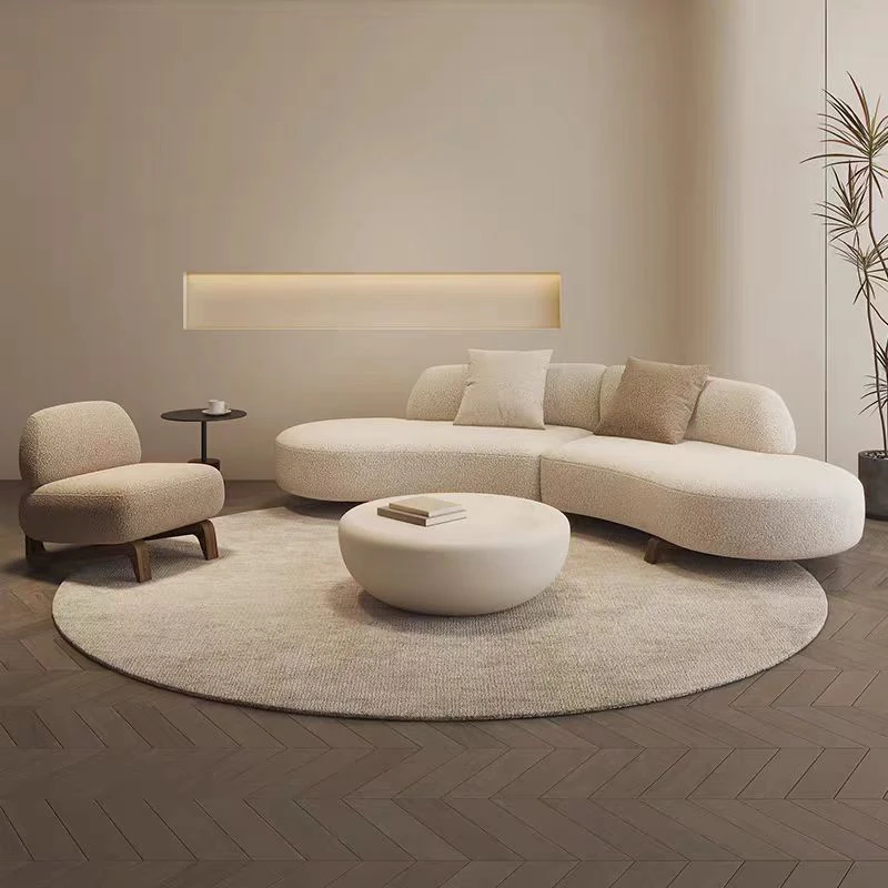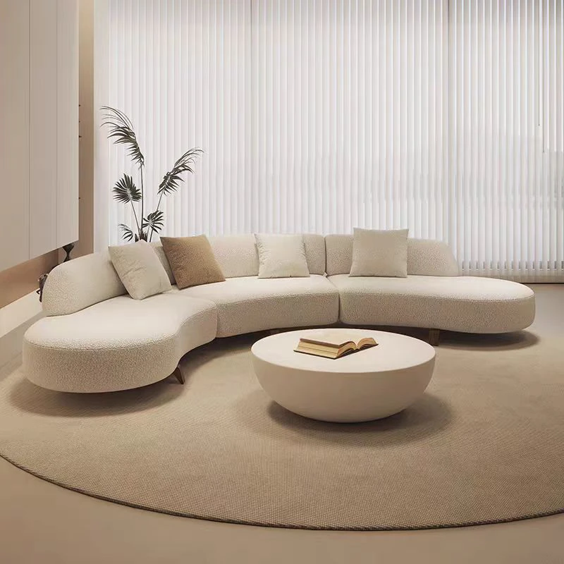 Italian Minimalist Curved Sofa - New Designer Collection for Spacious Living Rooms, Embracing Wabi-Sabi Aesthetics with a Touch of Light Luxury and Trendy Creamy Vibes. Perfect for Modern Homes!