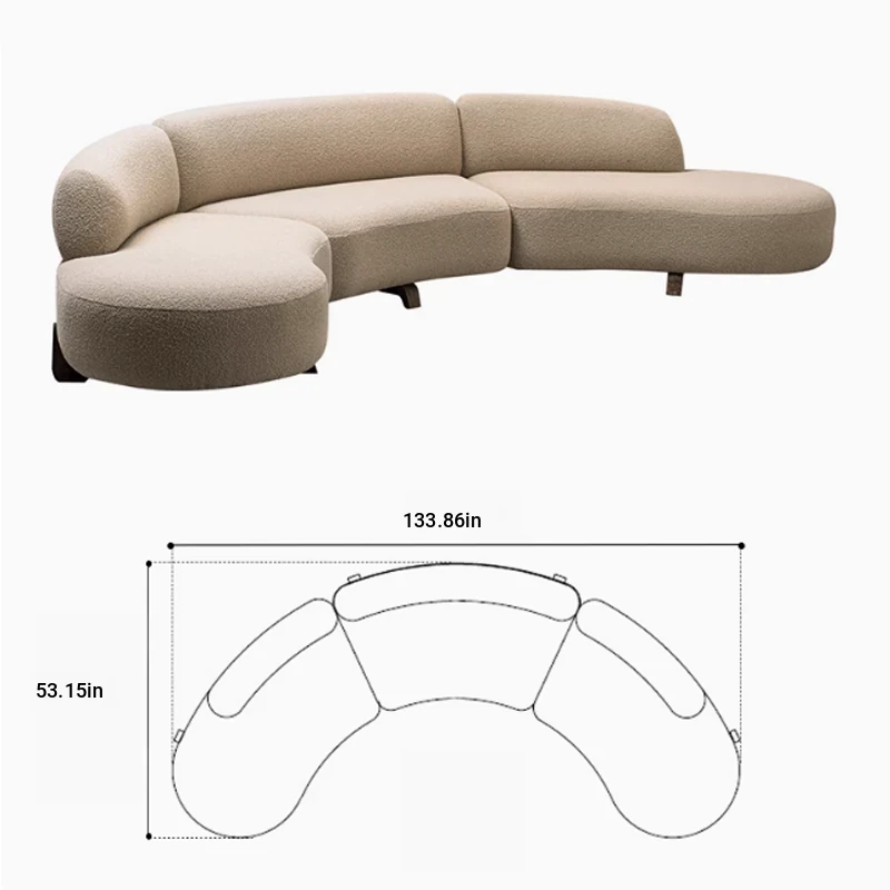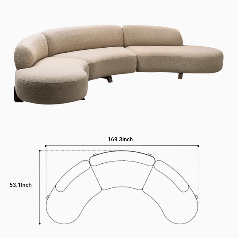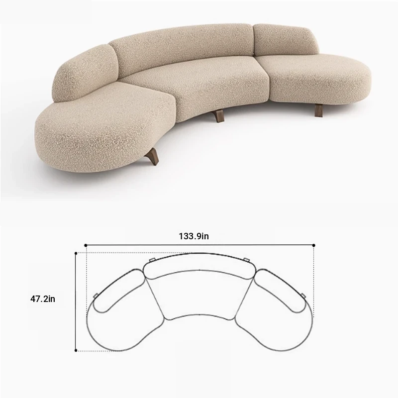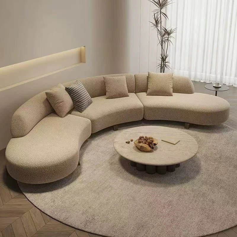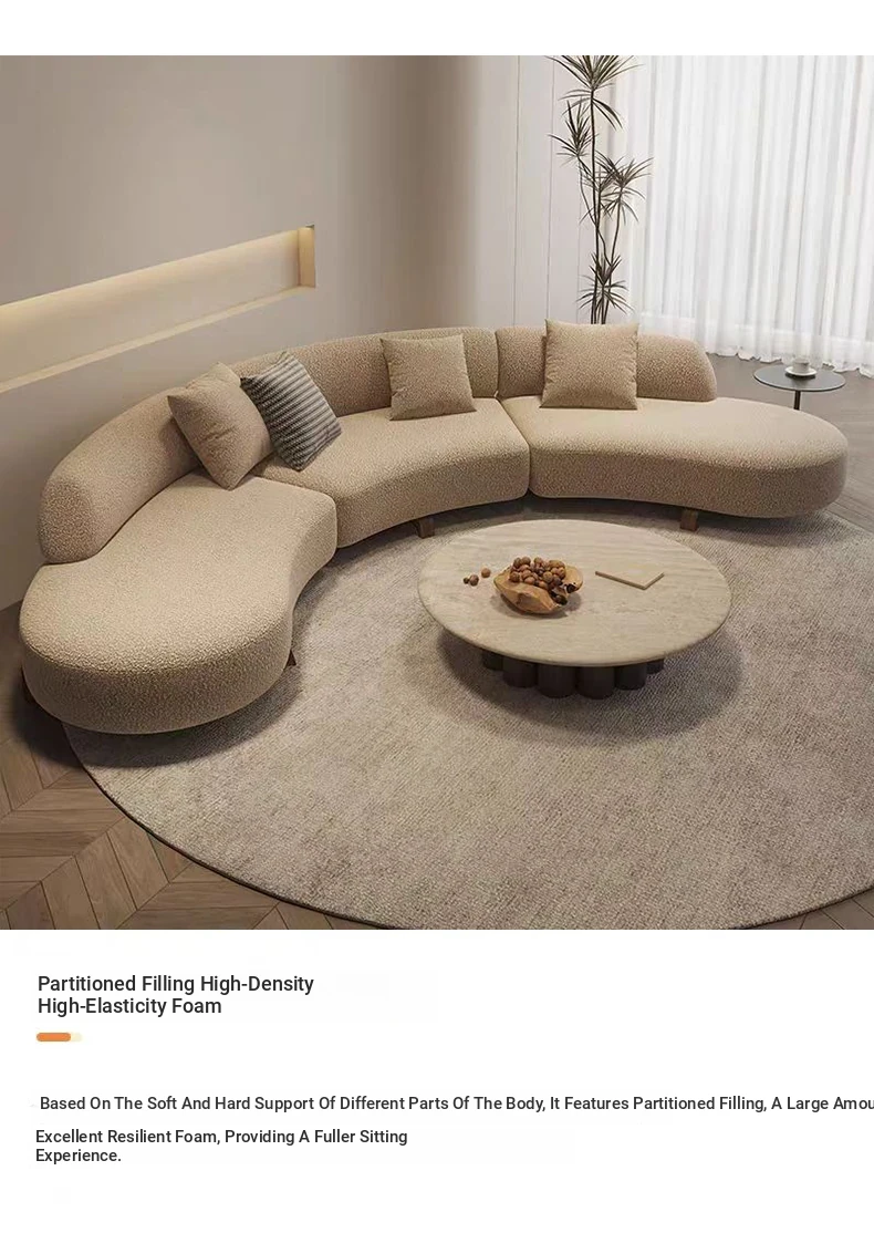 Italian Minimalist Curved Sofa - New Designer Collection for Spacious Living Rooms, Embracing Wabi-Sabi Aesthetics with a Touch of Light Luxury and Trendy Creamy Vibes. Perfect for Modern Homes!