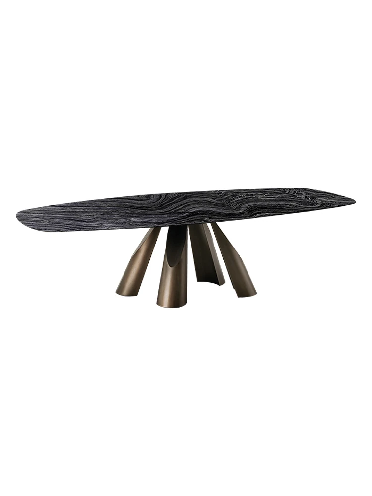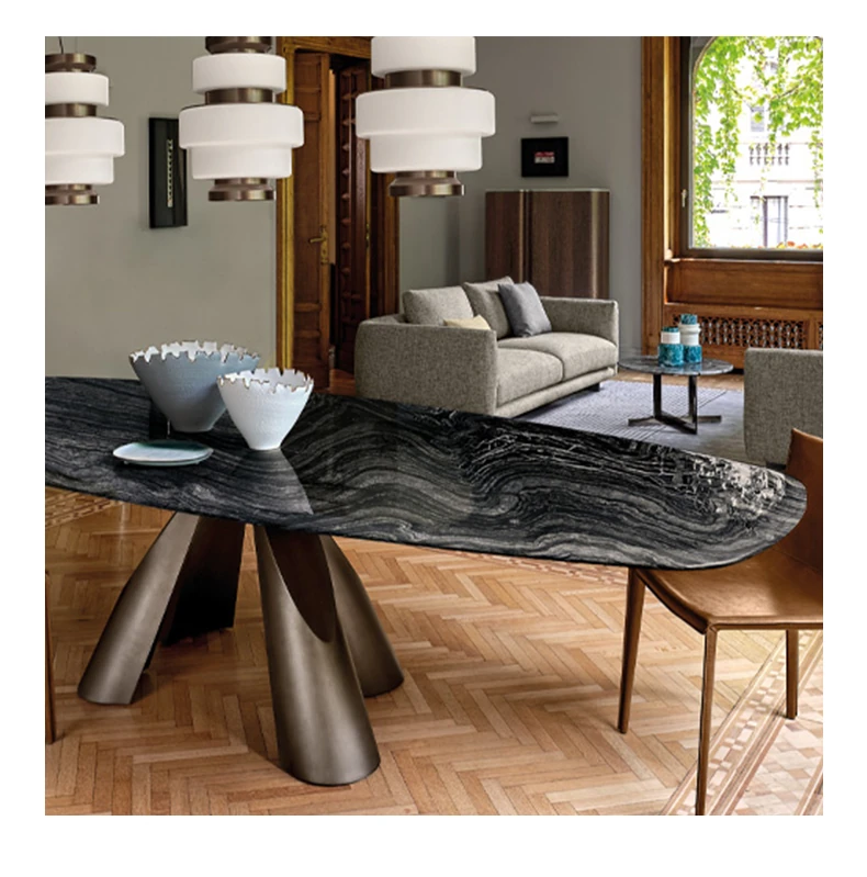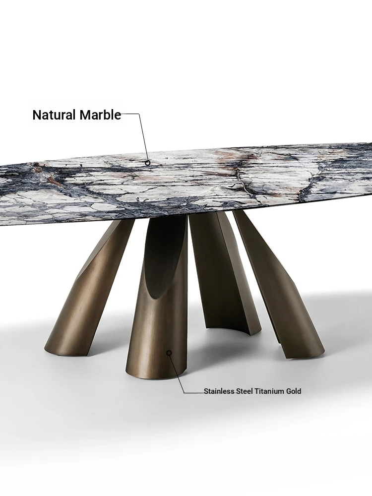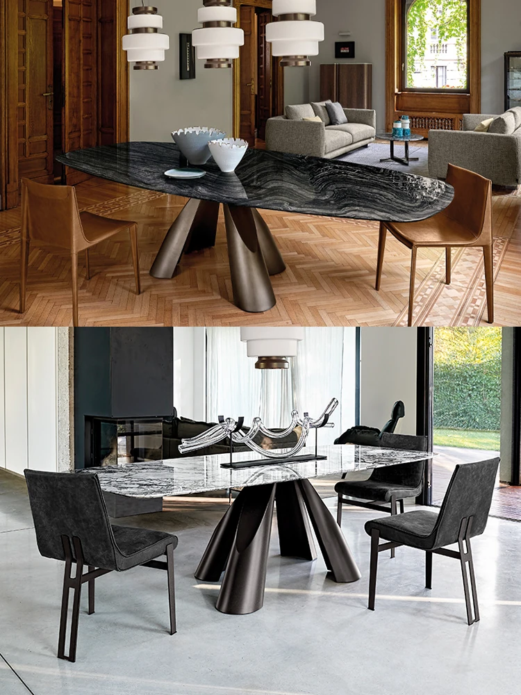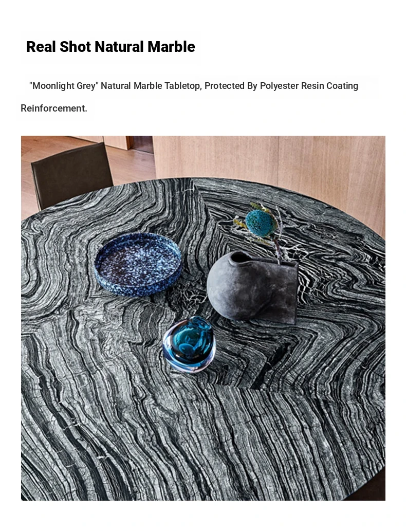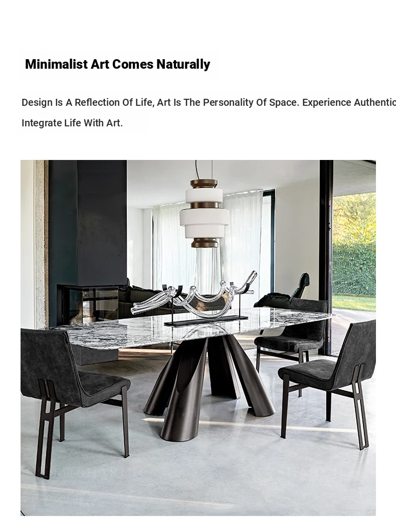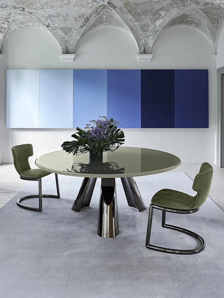 Italian Minimalist Luxury Dining Table Set - Elegant Round Marble Dining Table with Chairs for Spacious Homes, Perfect for Modern Living.