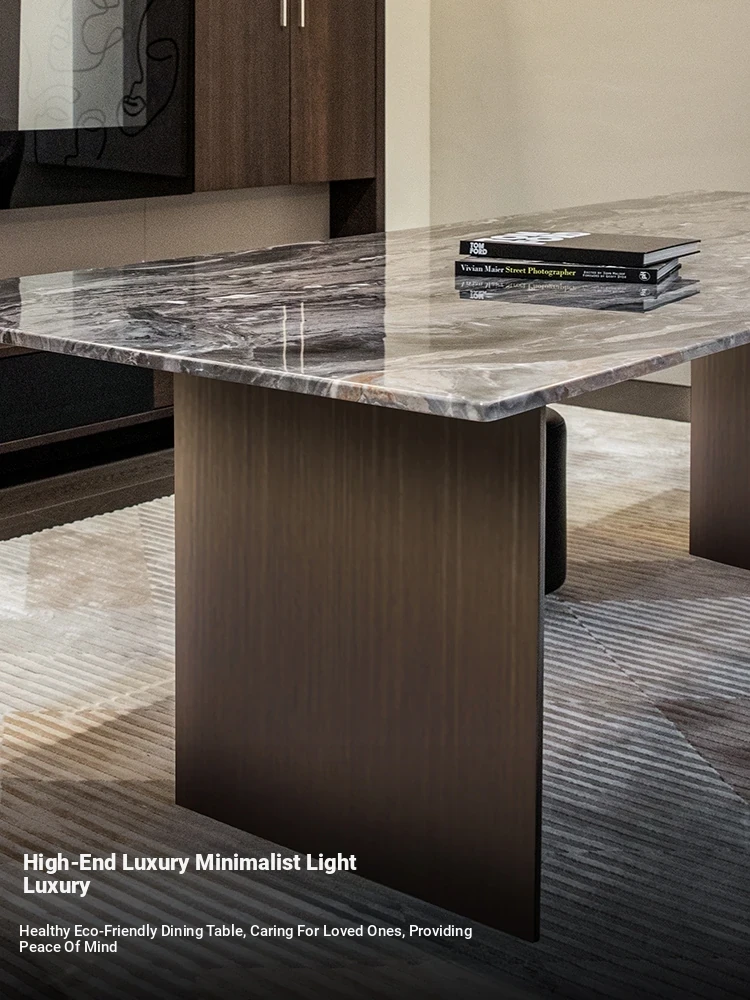 Italian Minimalist Marble Dining Table and Chair Set - Nordic Designer Simple Rectangular Modern Home Dining Table for Living Room