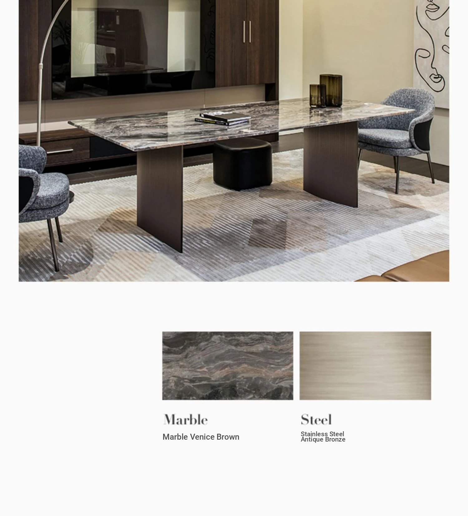 70.87 in dining table (Italian Marble/stainless steel frame)
