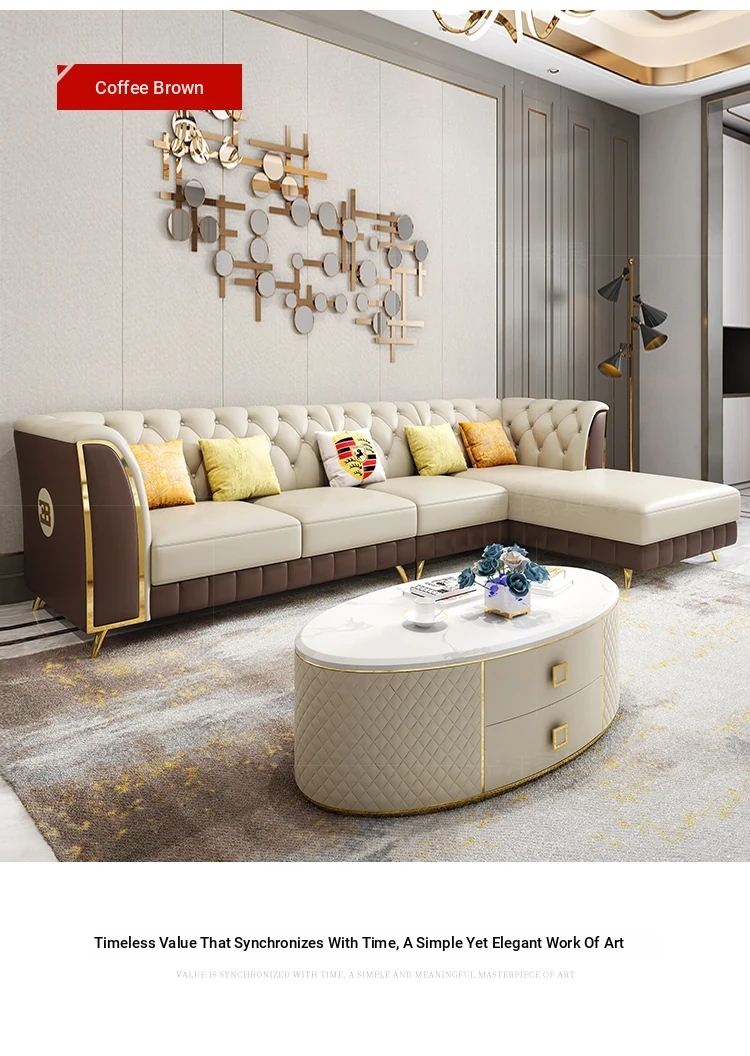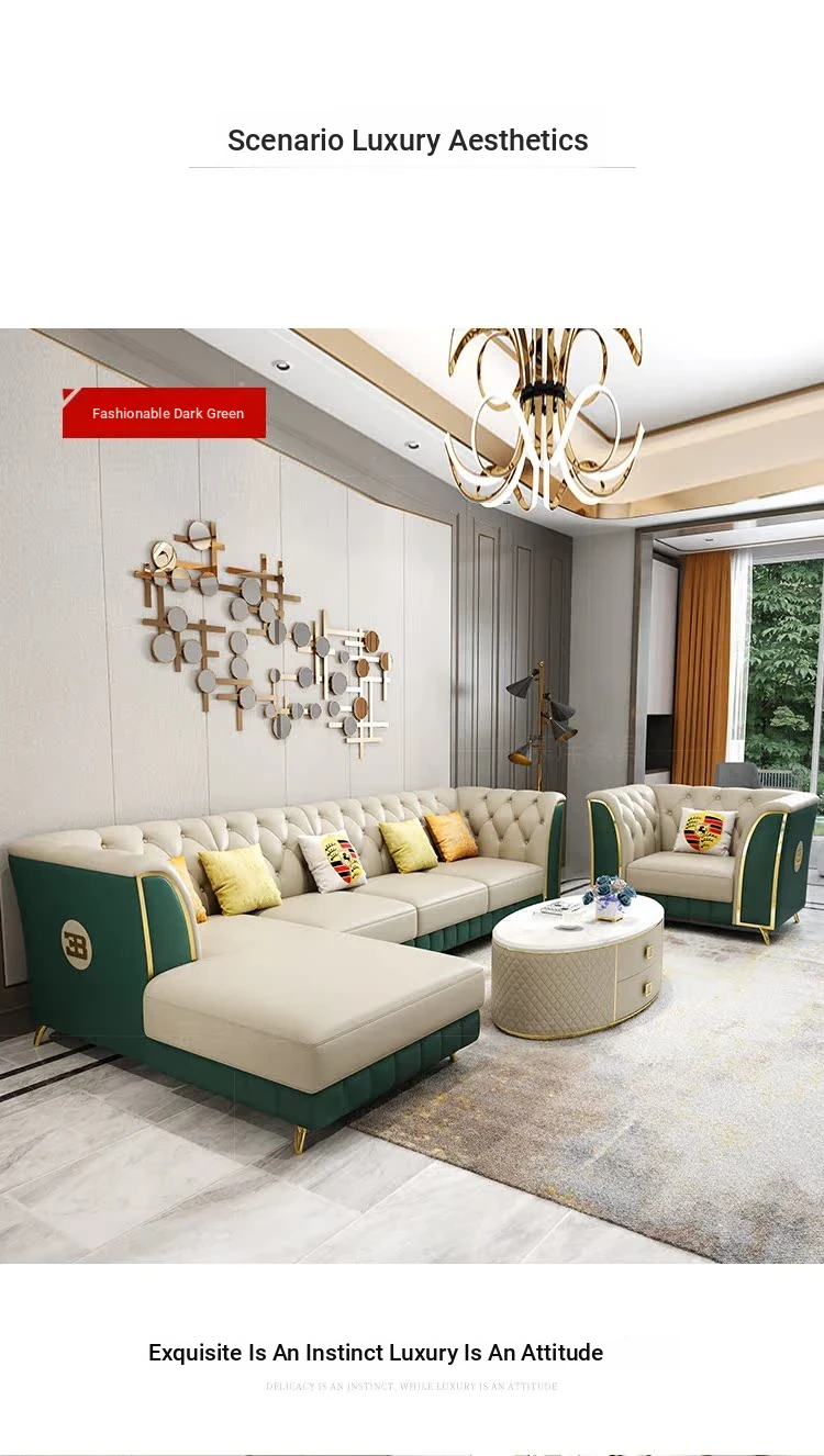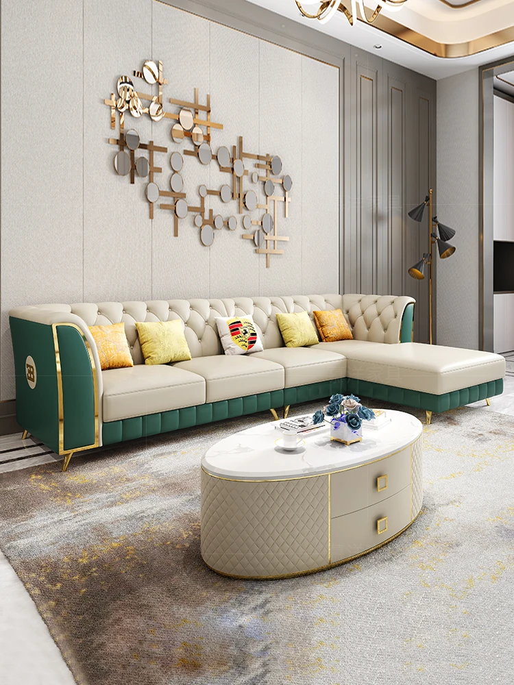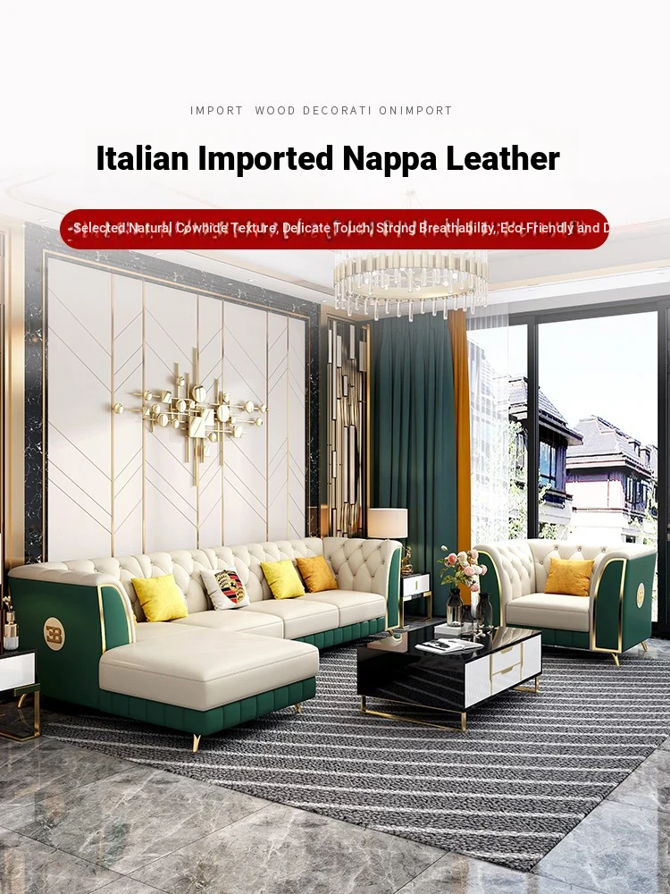 Luxury Genuine Leather Sofa Set – Modern Minimalist Corner Chaise for Small Living Rooms – Comfortable and Stylish 4-Seater with Top-Grade Cowhide Upholstery