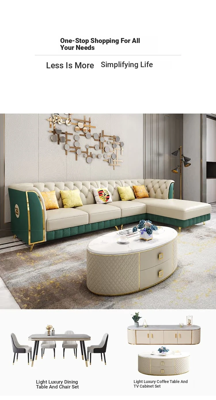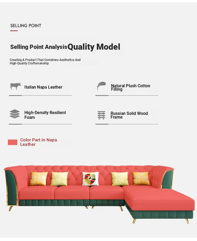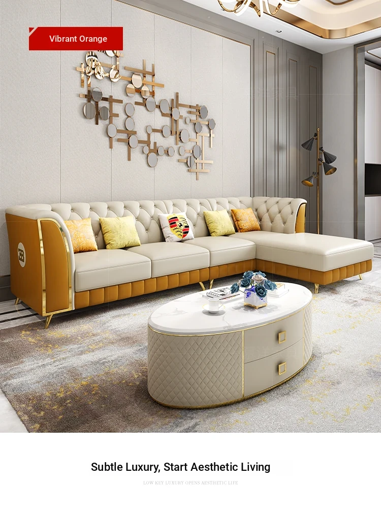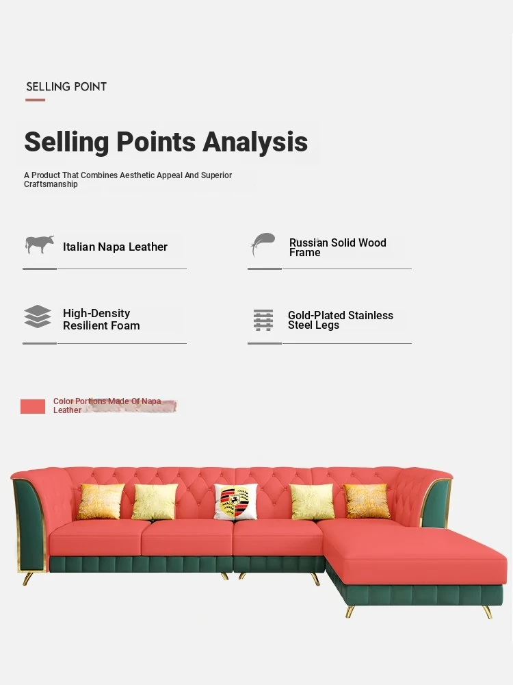 Luxury Genuine Leather Sofa Set – Modern Minimalist Corner Chaise for Small Living Rooms – Comfortable and Stylish 4-Seater with Top-Grade Cowhide Upholstery
