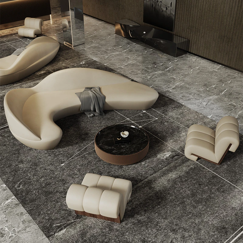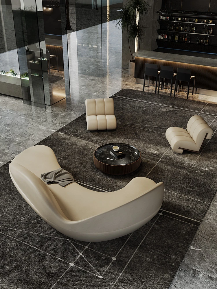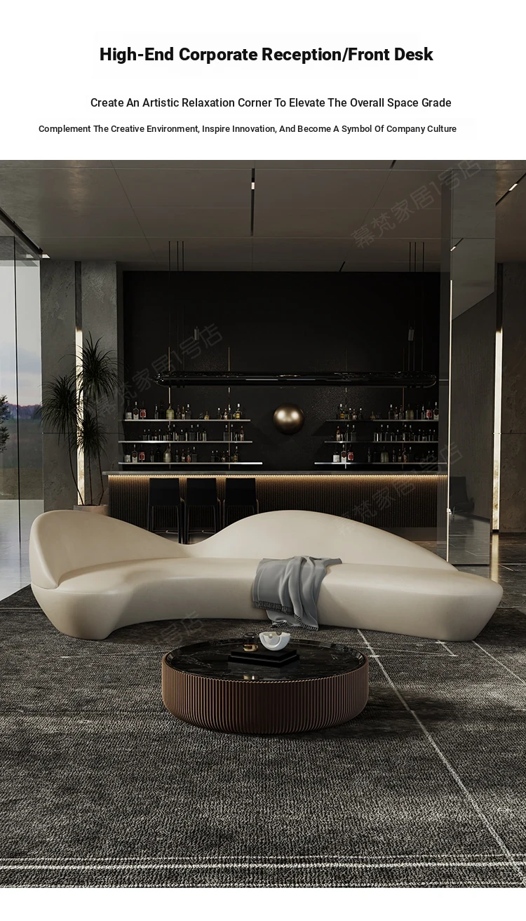 Luxury Half-Circle Sofa for Unique Reception Areas – Perfect for Hotels, Lobbies, Sales Offices, and Clubhouses. Ideal for Stylish Meetings and Relaxation Spaces.