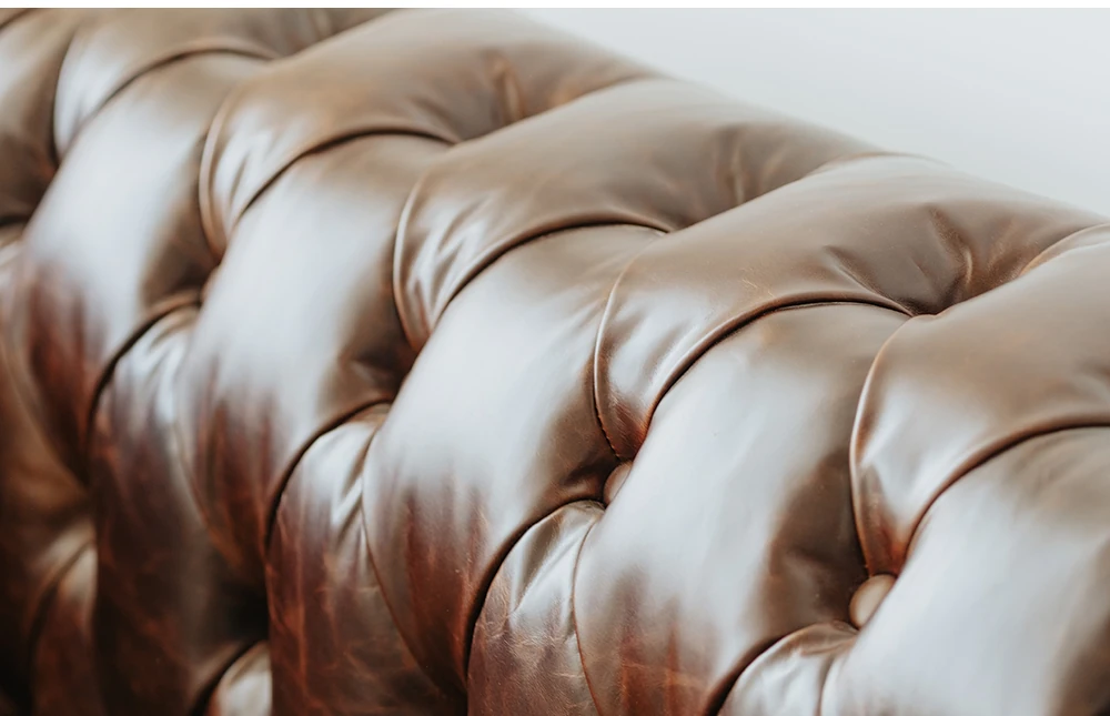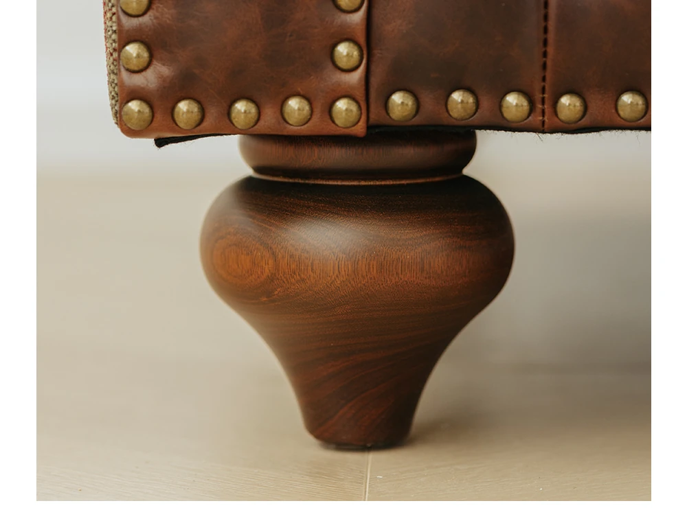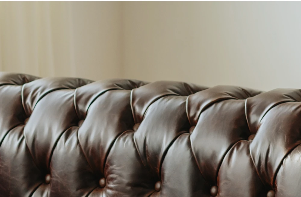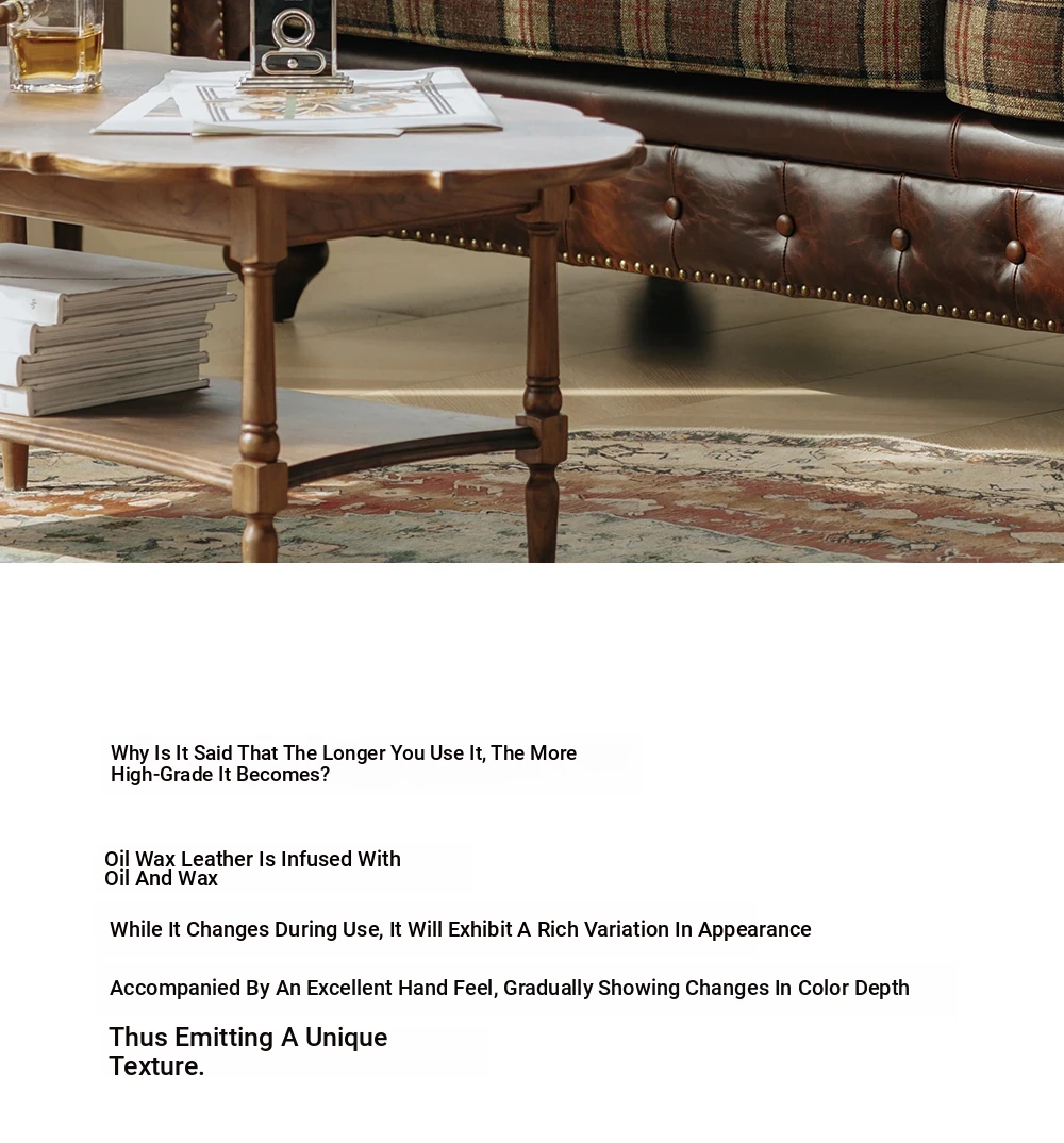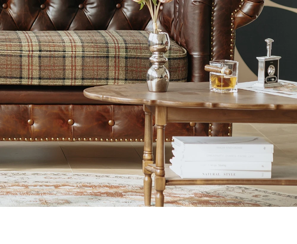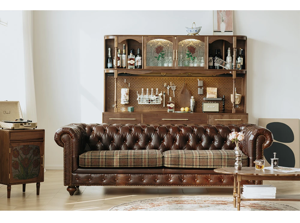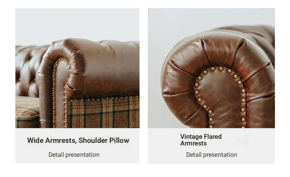 Mansfield Vintage Waxed Leather Sofa - Retro American Style 3-Seater Genuine Leather Couch for Living Room - Classic British Check Design