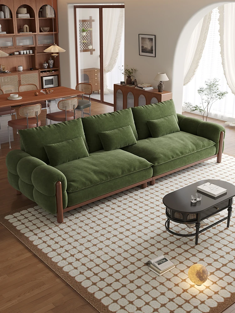 Government Subsidized 2025 New French Vintage Solid Wood Tofu Block Sofa - Perfect for Small Spaces, Elegant Retro Design for Your Living Room