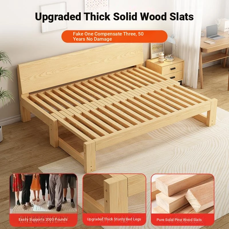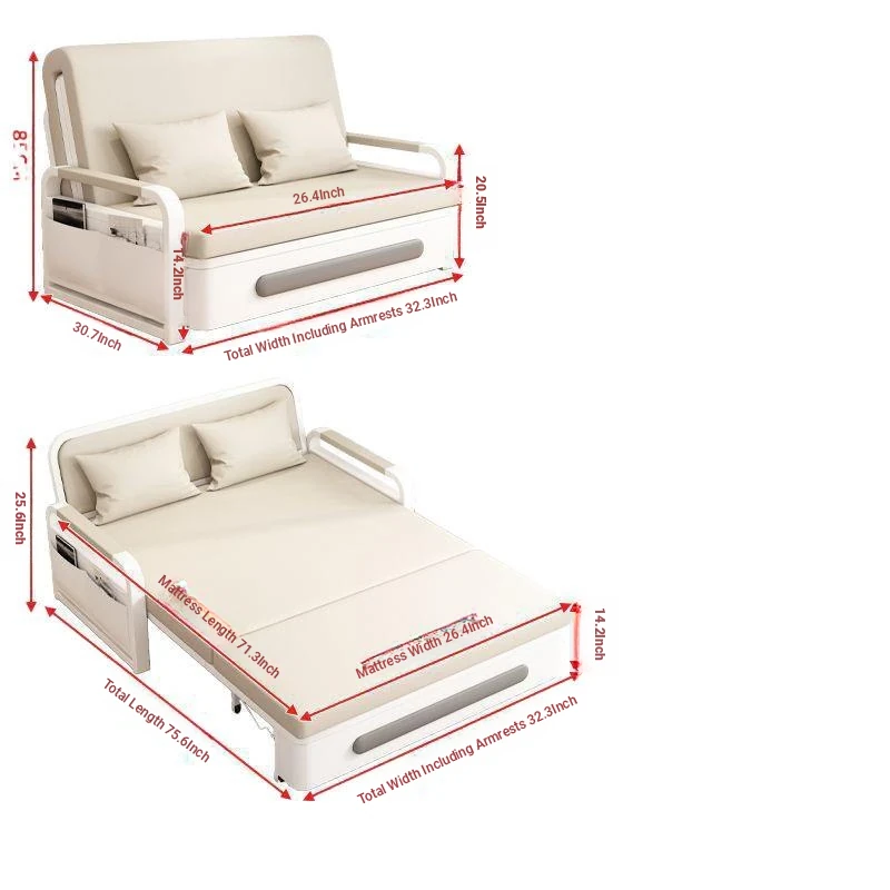Multifunctional Solid Wood Sofa Bed - Foldable and Space-Saving, Perfect for Small Living Rooms, Tatami Style, Ideal for Singles and Couples, Easy Pull-Out and Expandable Design.