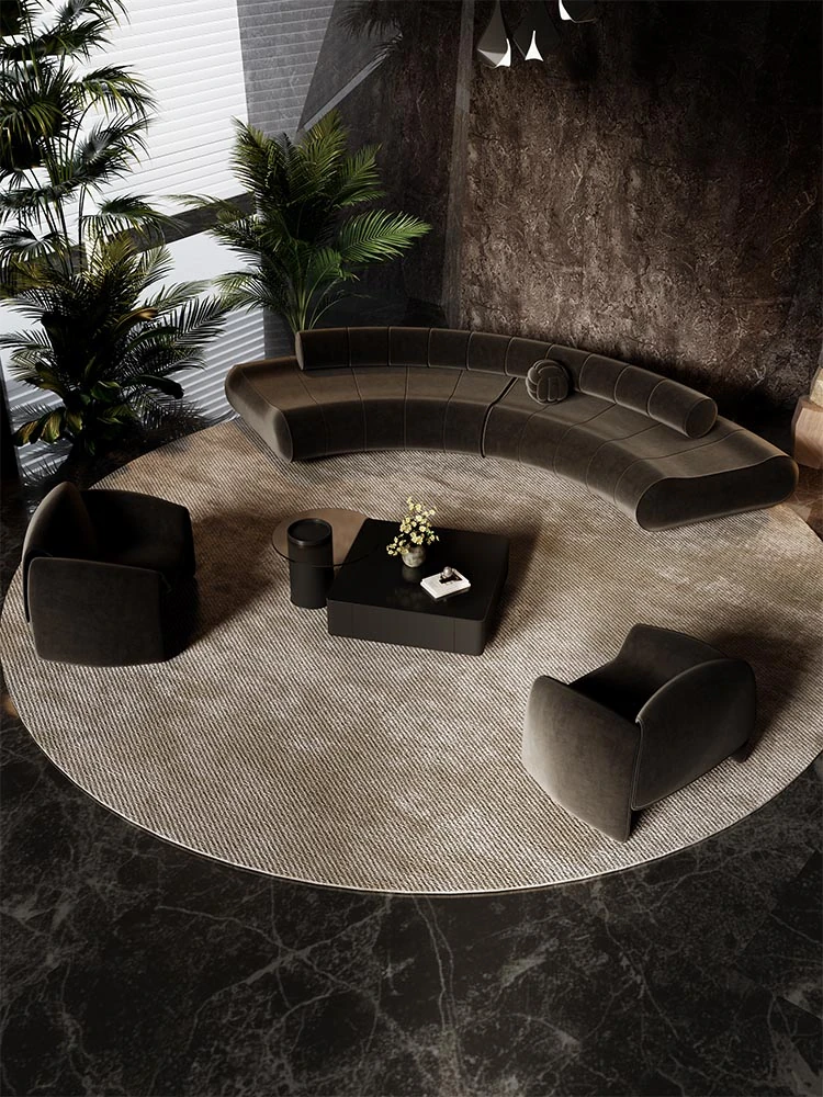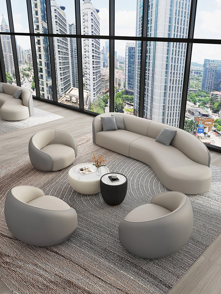 Minimalist Hotel Lobby VIP Lounge Reception Area Curved Leather Sofa for Sales Negotiations and Guest Meetings