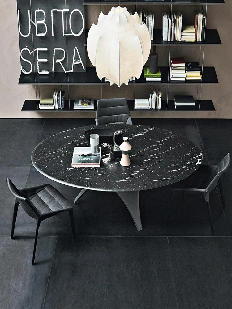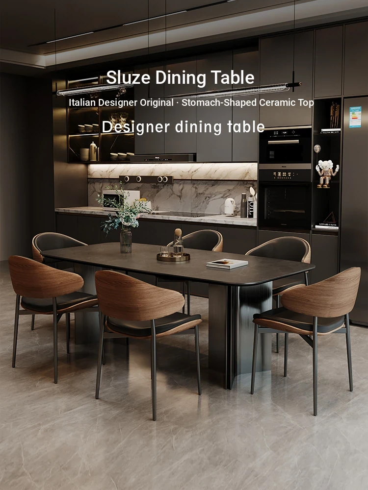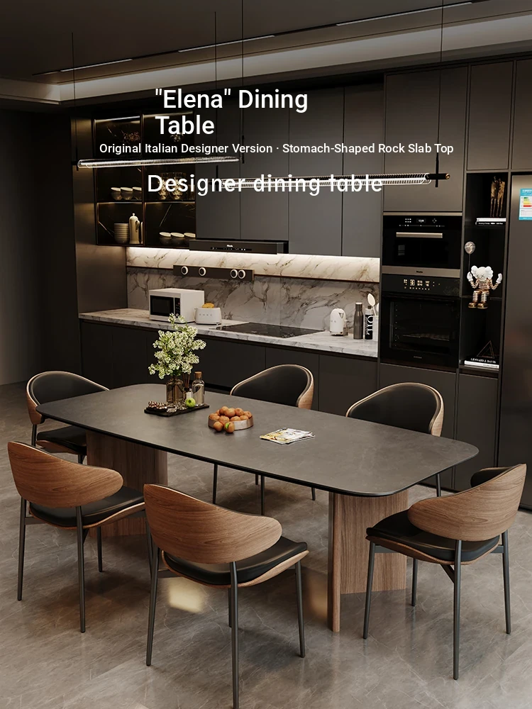 2025 New Italian Luxury Modern Minimalist Black Stone Dining Table Set - High-End Elegant Dining Chair and Table Combination