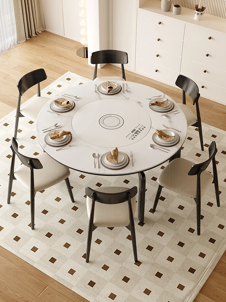 Stylish Multifunctional Round Dining Table Set with Induction Cooker and Heating Plate - Modern Minimalist Design for Home Use, Versatile and Chic!