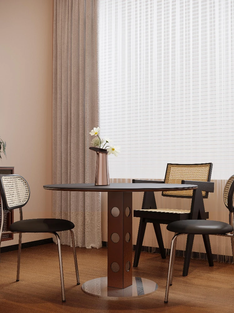 Italian Minimalist Round Dining Table and Chair Set - Artistic, Light Luxury Design for Small Spaces with Rotating Platter