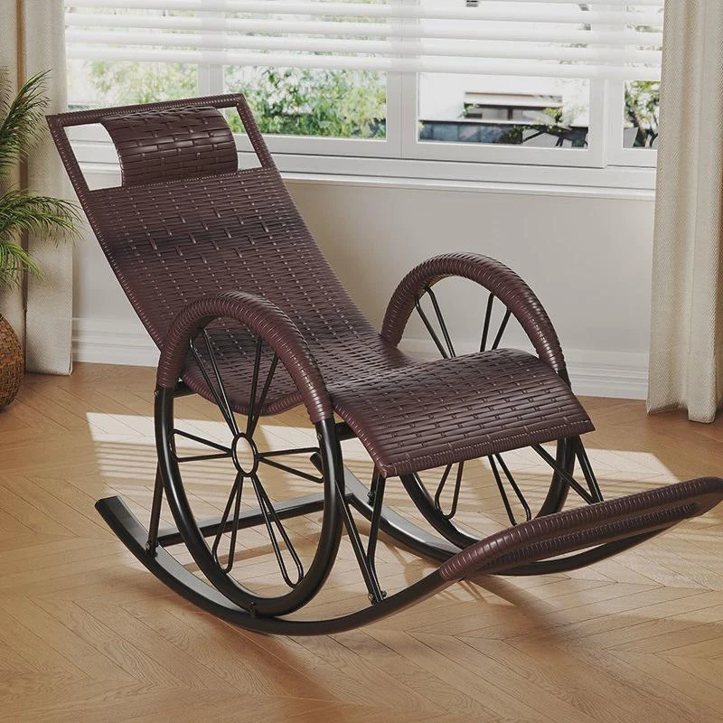 Outdoor Waterproof and Sun-Resistant Rocking Chair for Seniors – Comfortable Recliner with Rattan Weaving, Perfect for Patios and Gardens