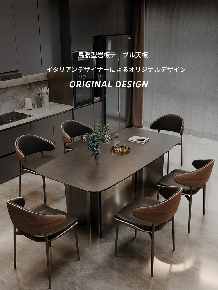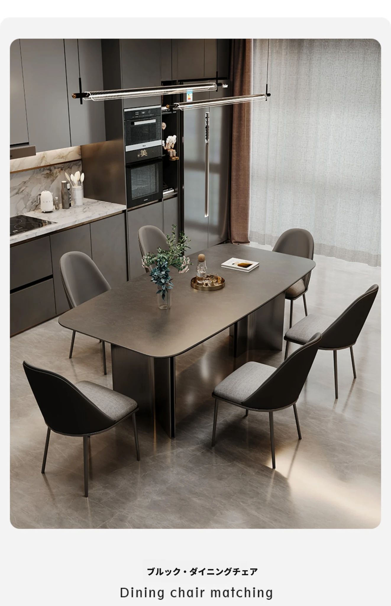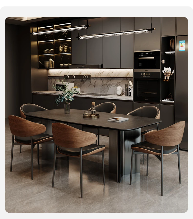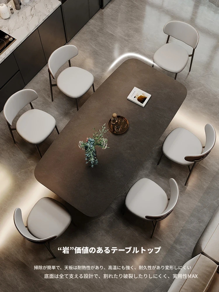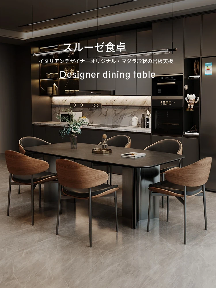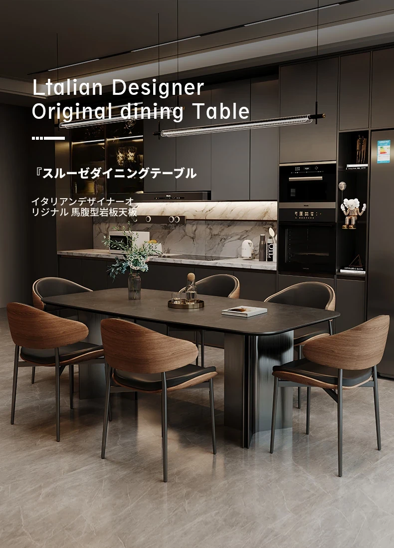 イタリアンラグジュアリー現代的ミニマルブラックストーンダイニングテーブル2025新作ハイエンドシンプルダイニングセット。洗練されたデザインで、どんなインテリアにも調和します。
