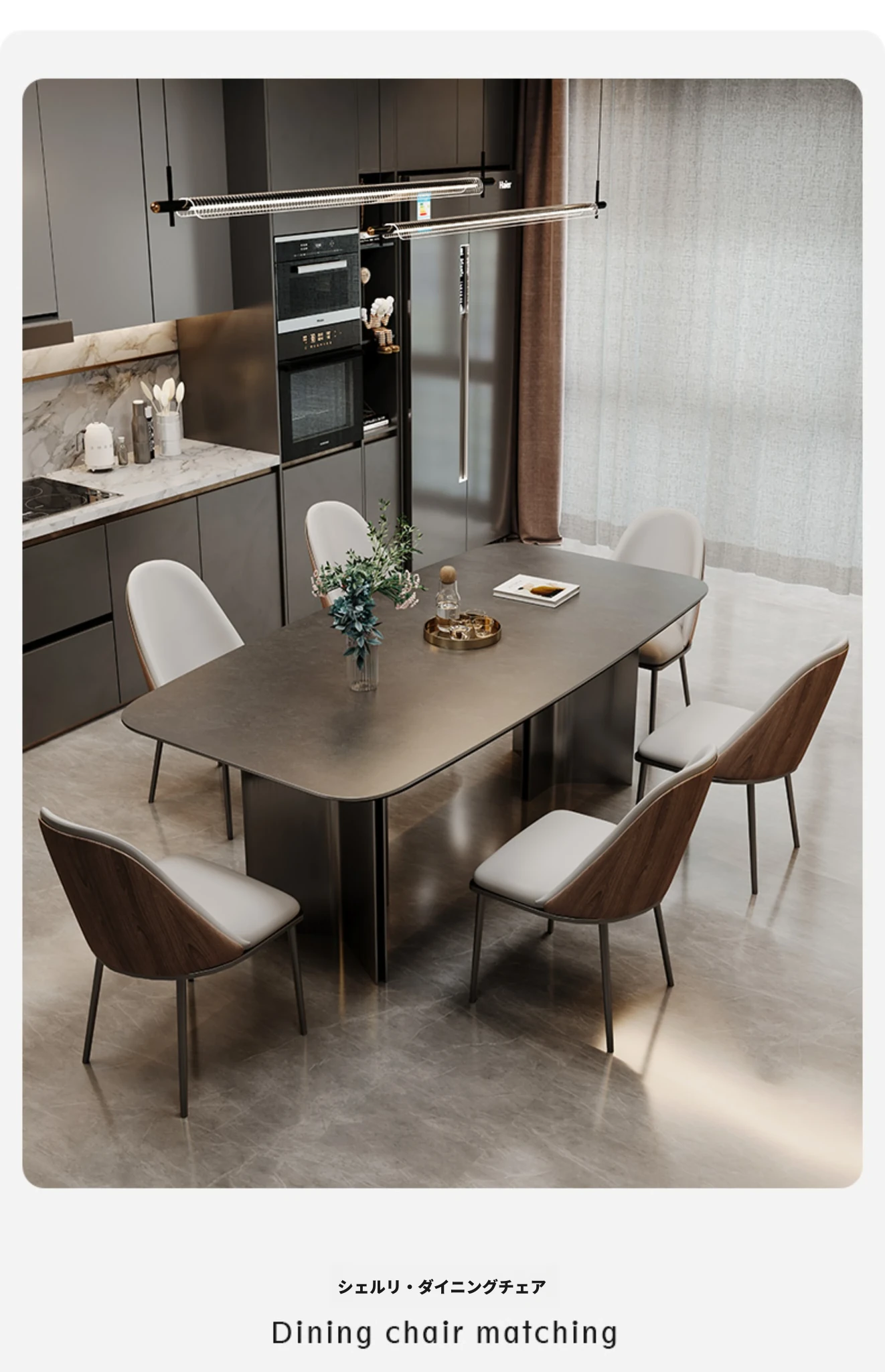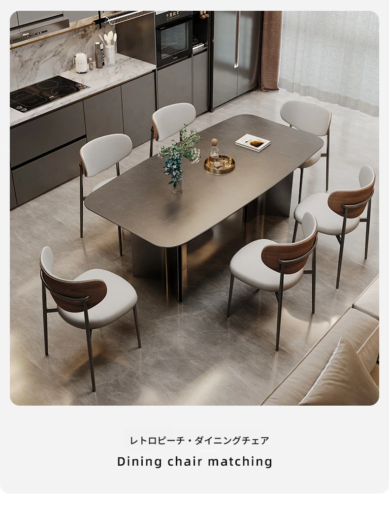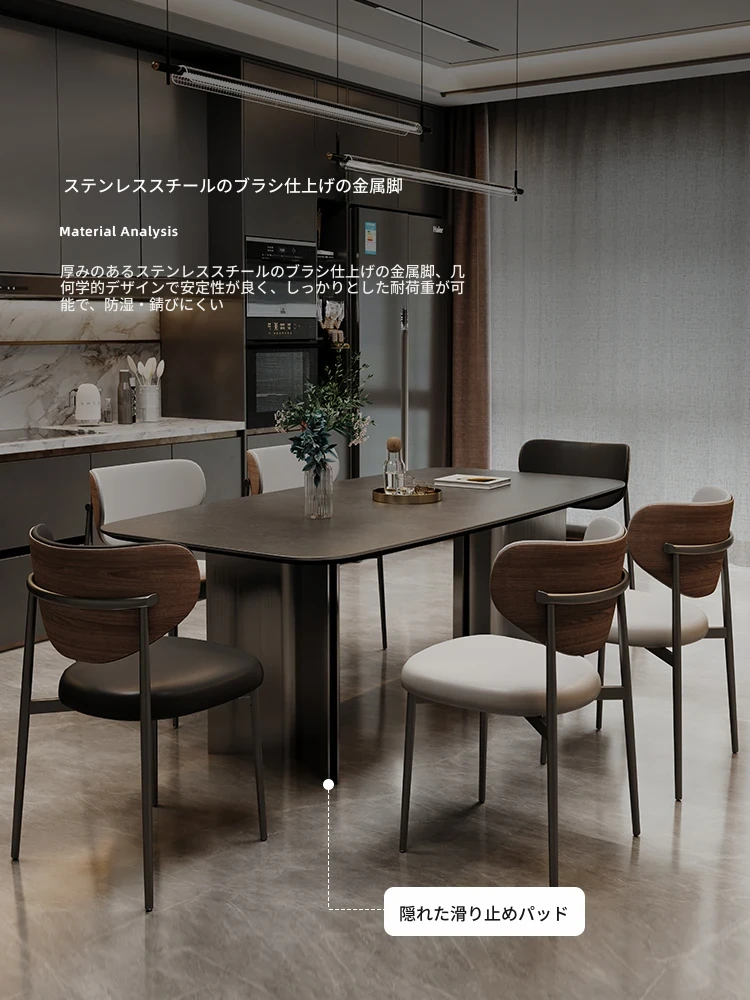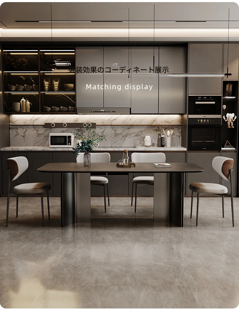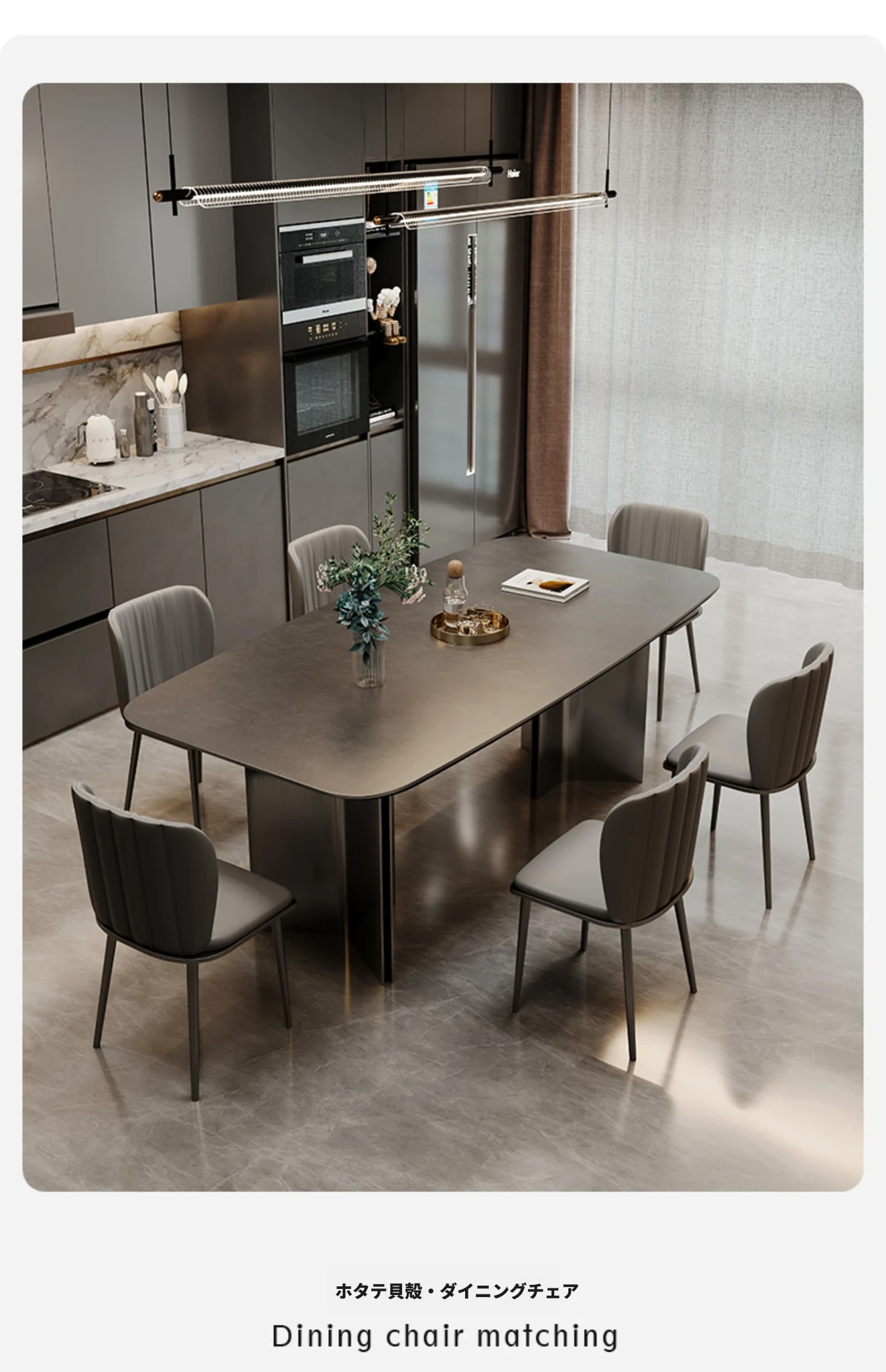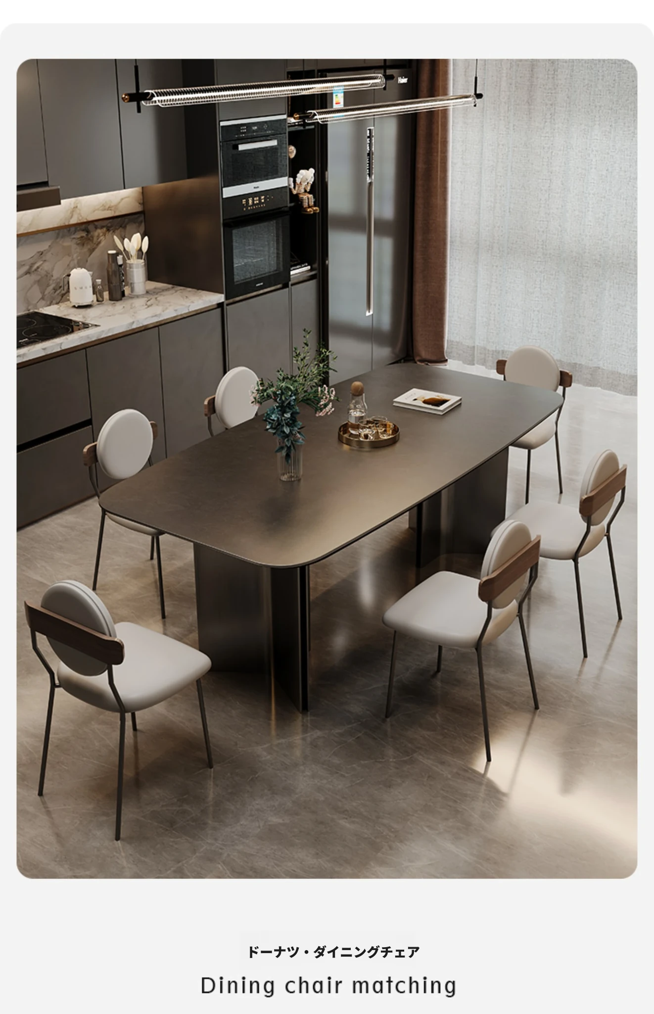 イタリアンラグジュアリー現代的ミニマルブラックストーンダイニングテーブル2025新作ハイエンドシンプルダイニングセット。洗練されたデザインで、どんなインテリアにも調和します。