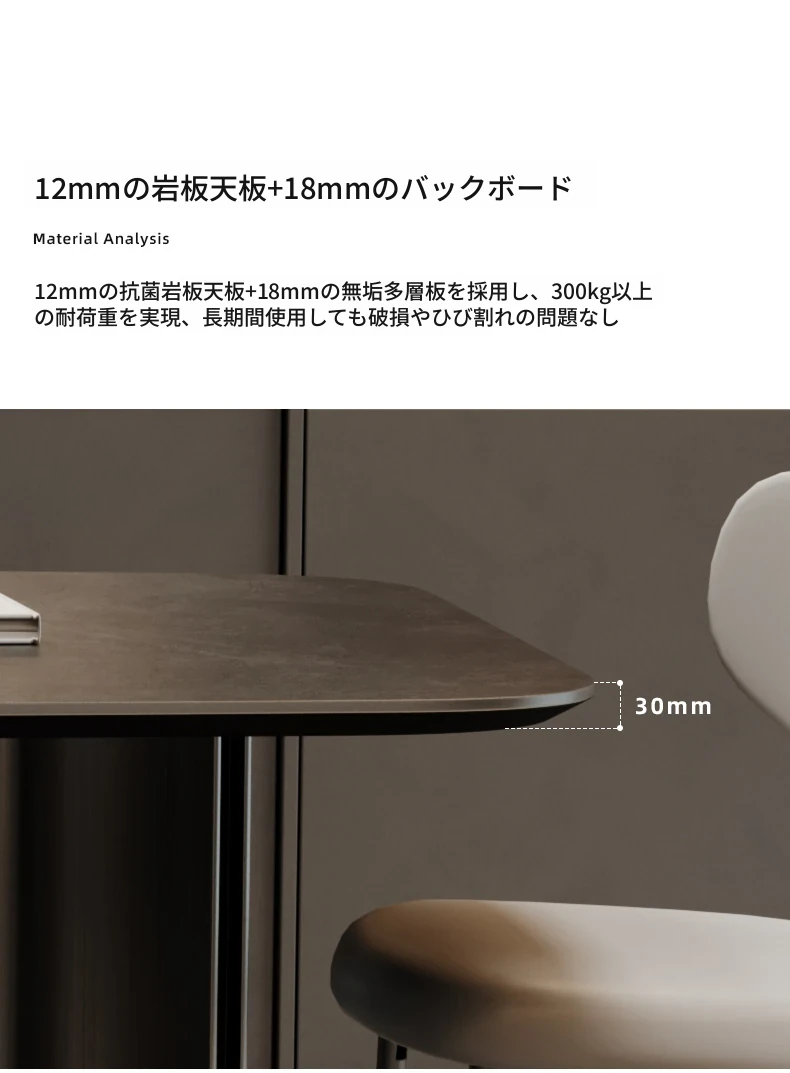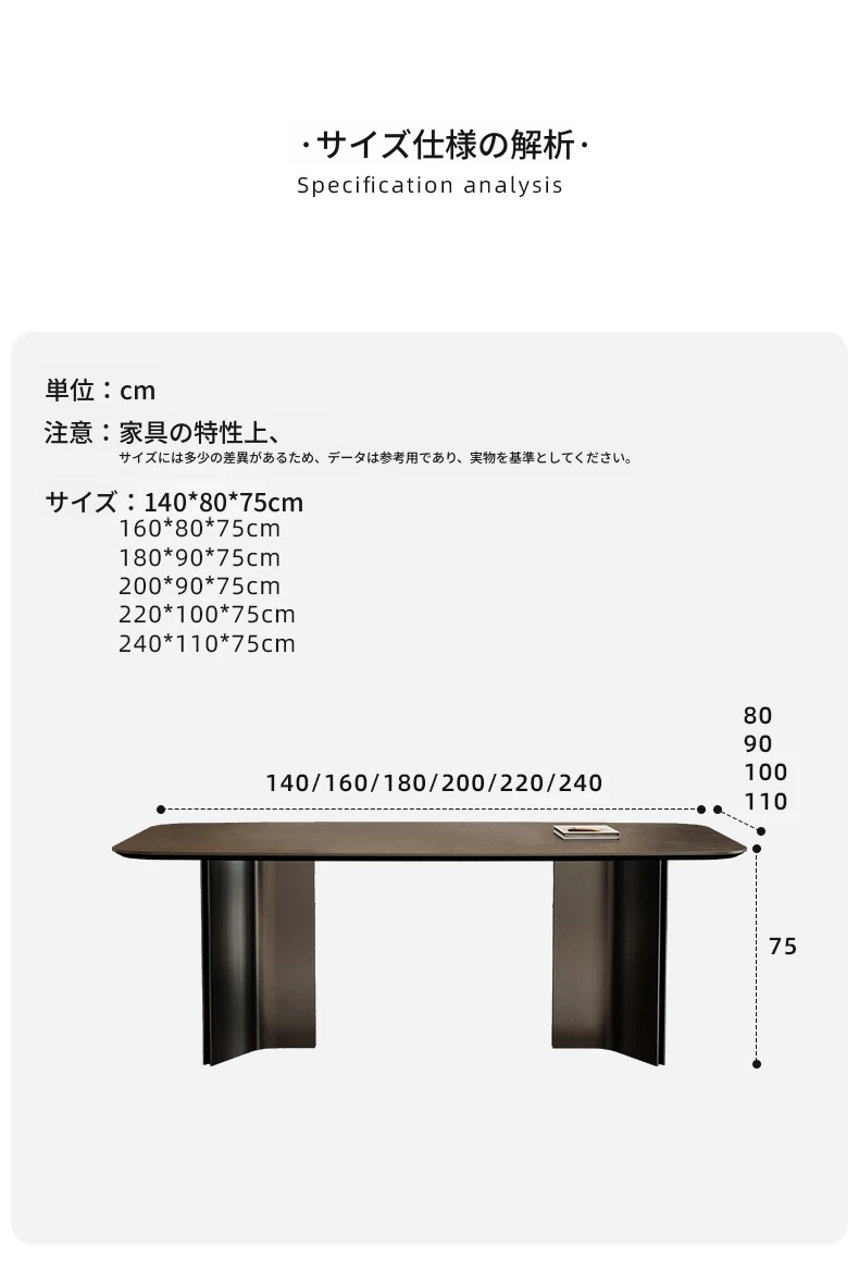 【スルゼ食卓】2.4メートル全托複合岩板 マット純黒馬腹型天板