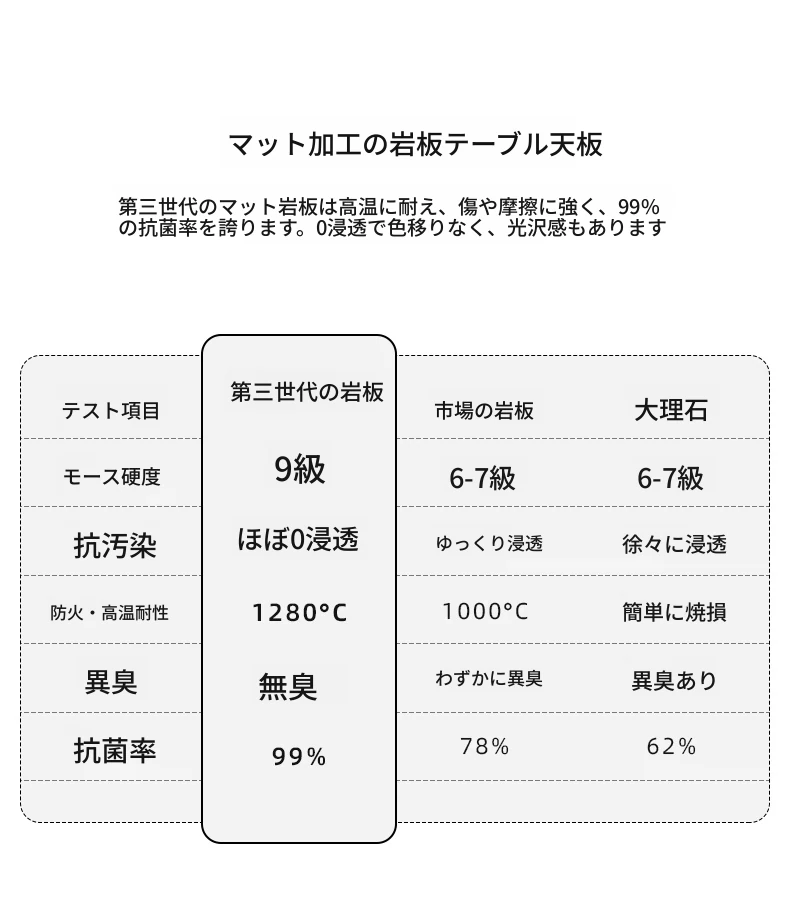 【スルゼ食卓】1.8メートル全托複合岩板 マット銀河黒馬腹型天板