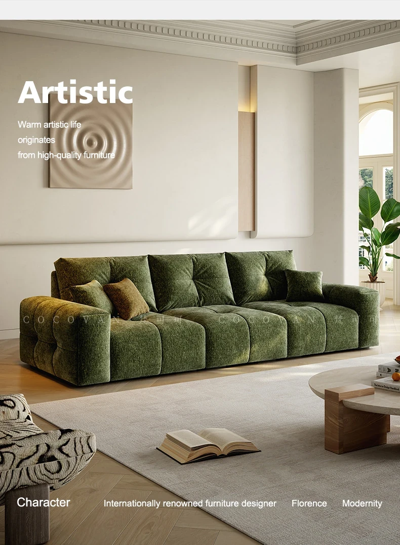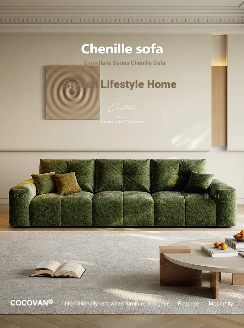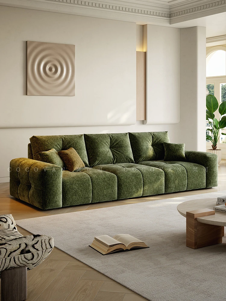 2025 New Vintage French Fabric Pixel Sofa - Retro Chenille Three-Seater for Living Room, Perfect Blend of Style and Comfort