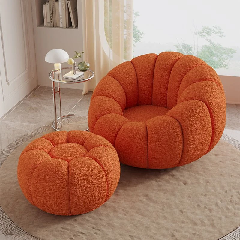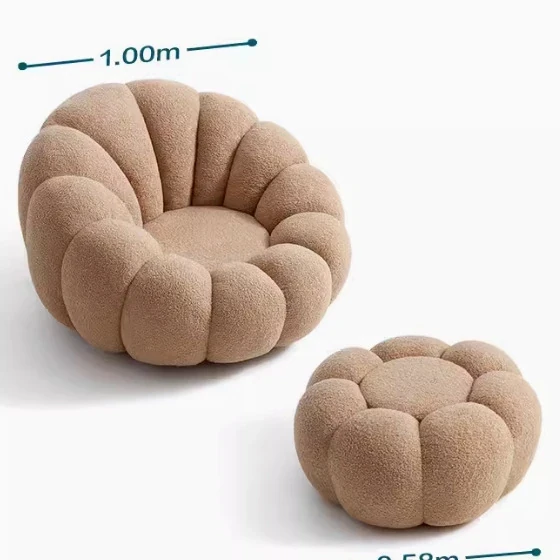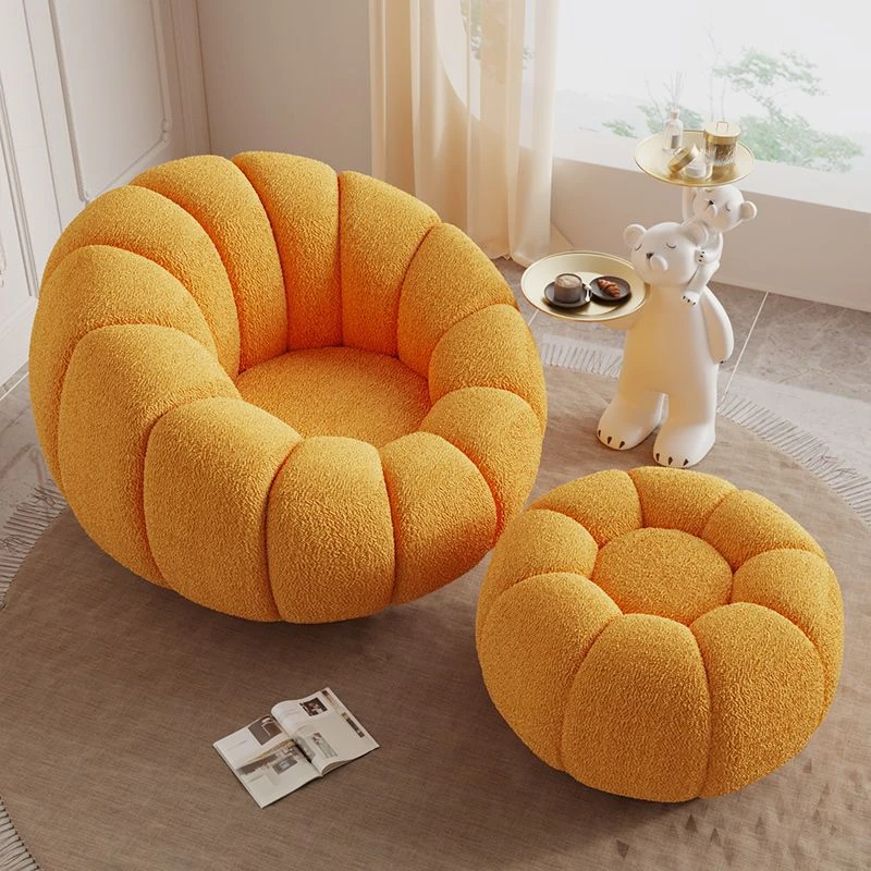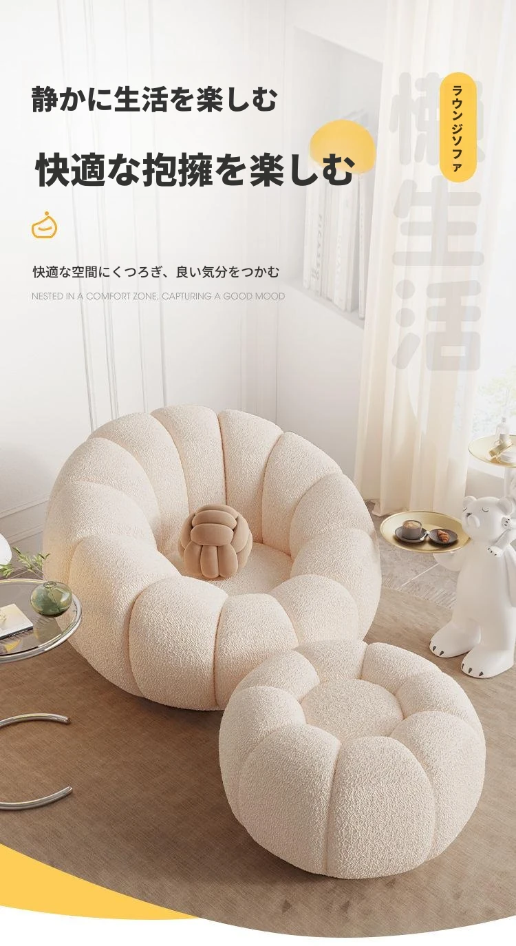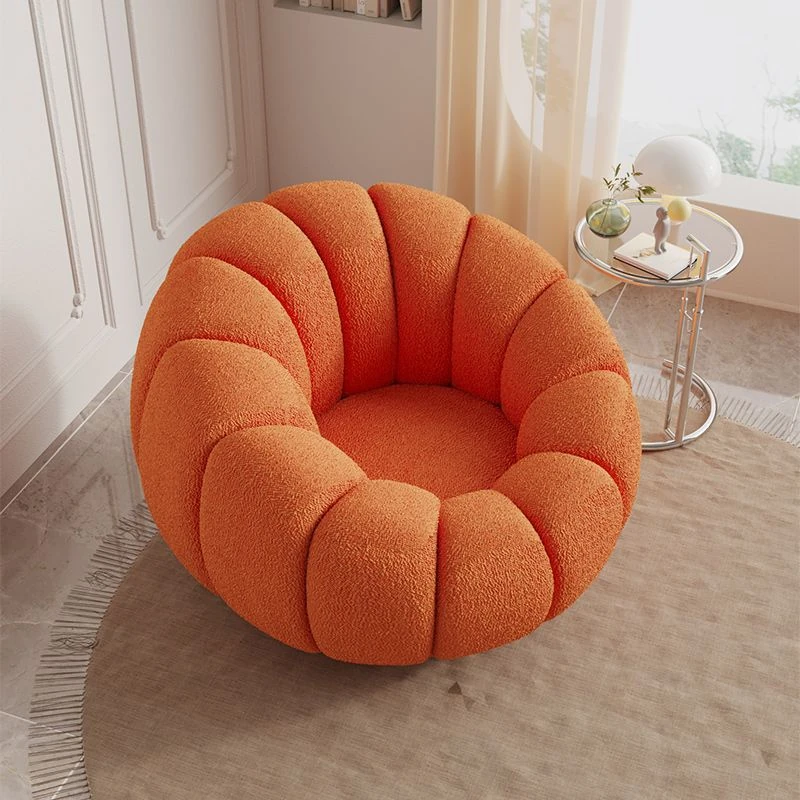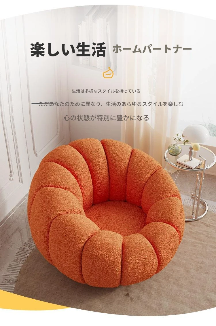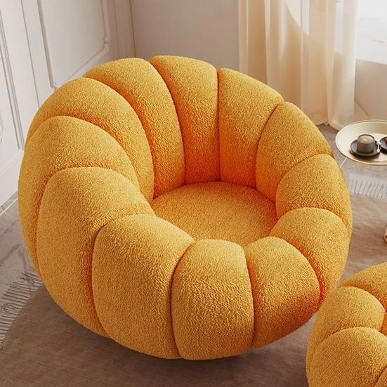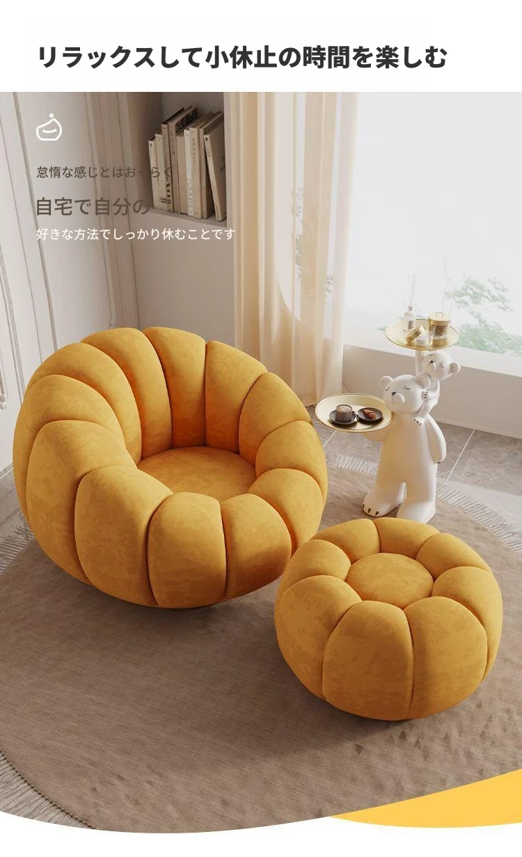 くつろぎの南瓜花弁形シングルソファ - クリーム風デザインで回転可能!寝室やバルコニーにぴったりのリラックスチェア。快適さとスタイルを兼ね備えた、あなたの特別な空間に最適です。