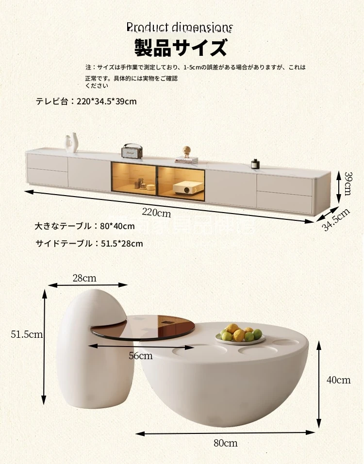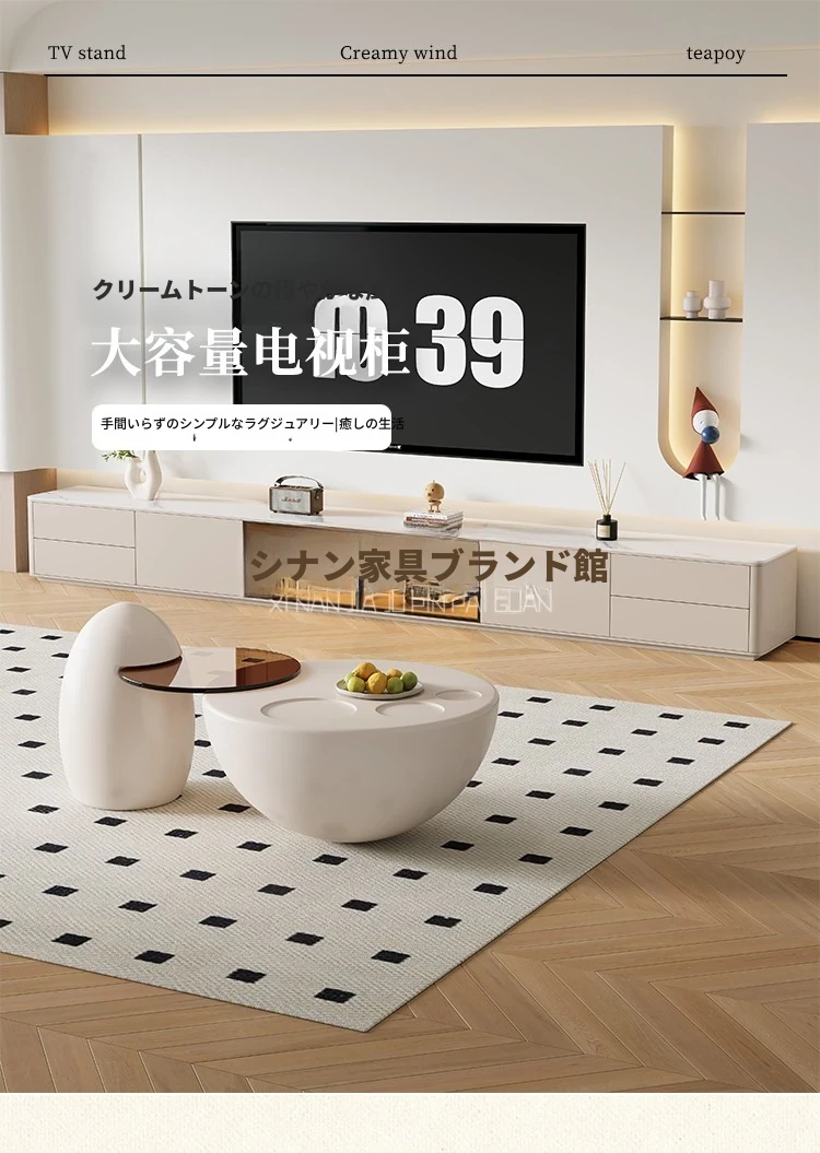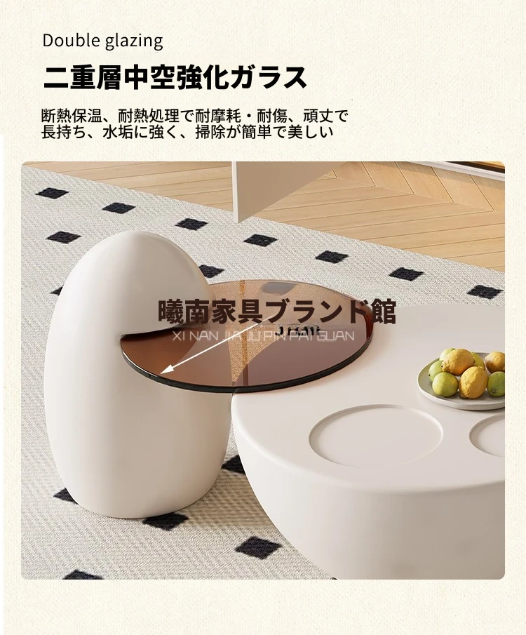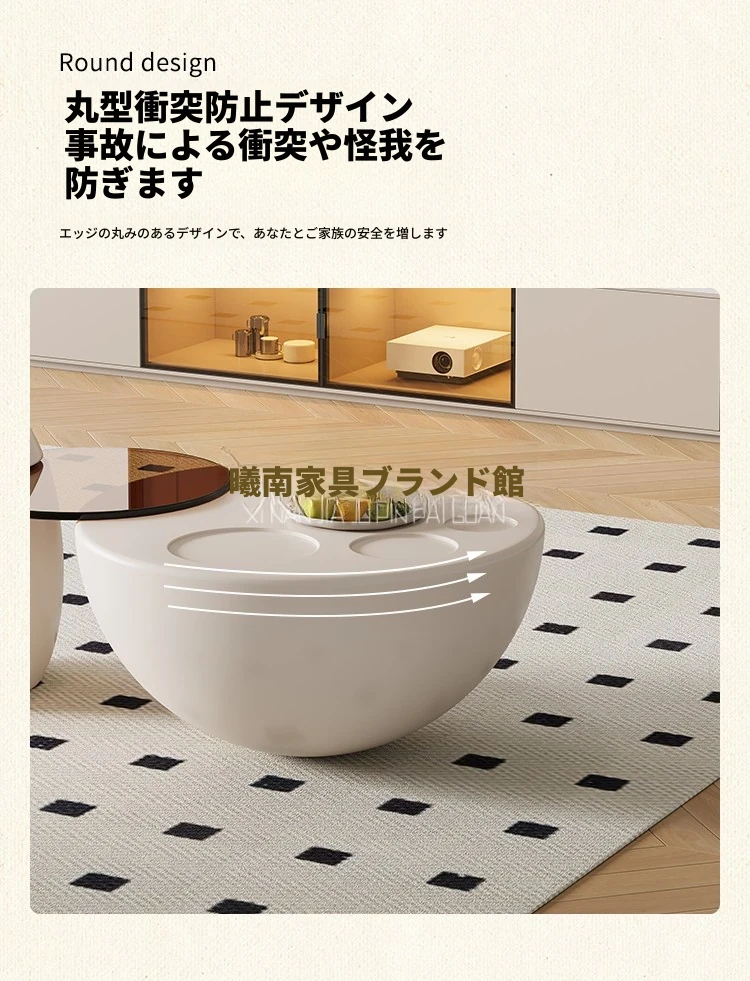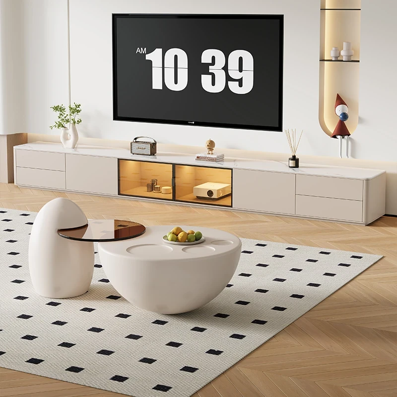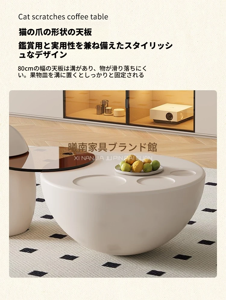 クリーム風の猫爪デザインコーヒーテーブル - 小型リビングにぴったりなラウンド型、洗練されたクリエイティブな軽奢華スタイルのテレビキャビネット!おしゃれで機能的、あなたの部屋を特別な空間に変えます。