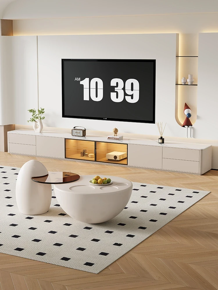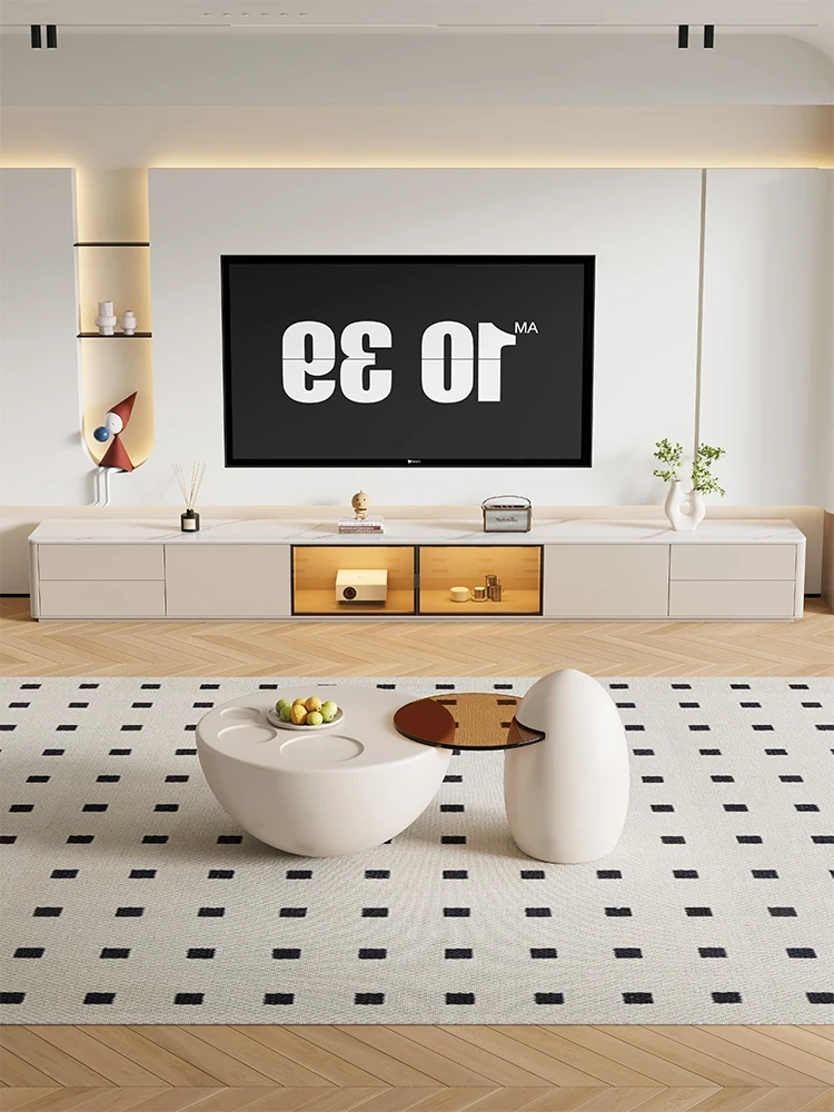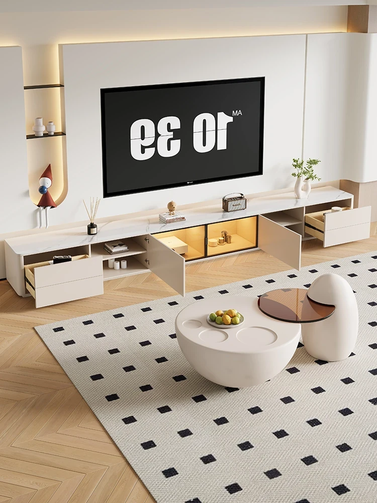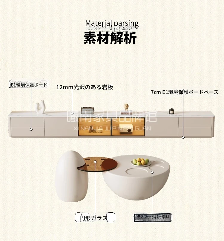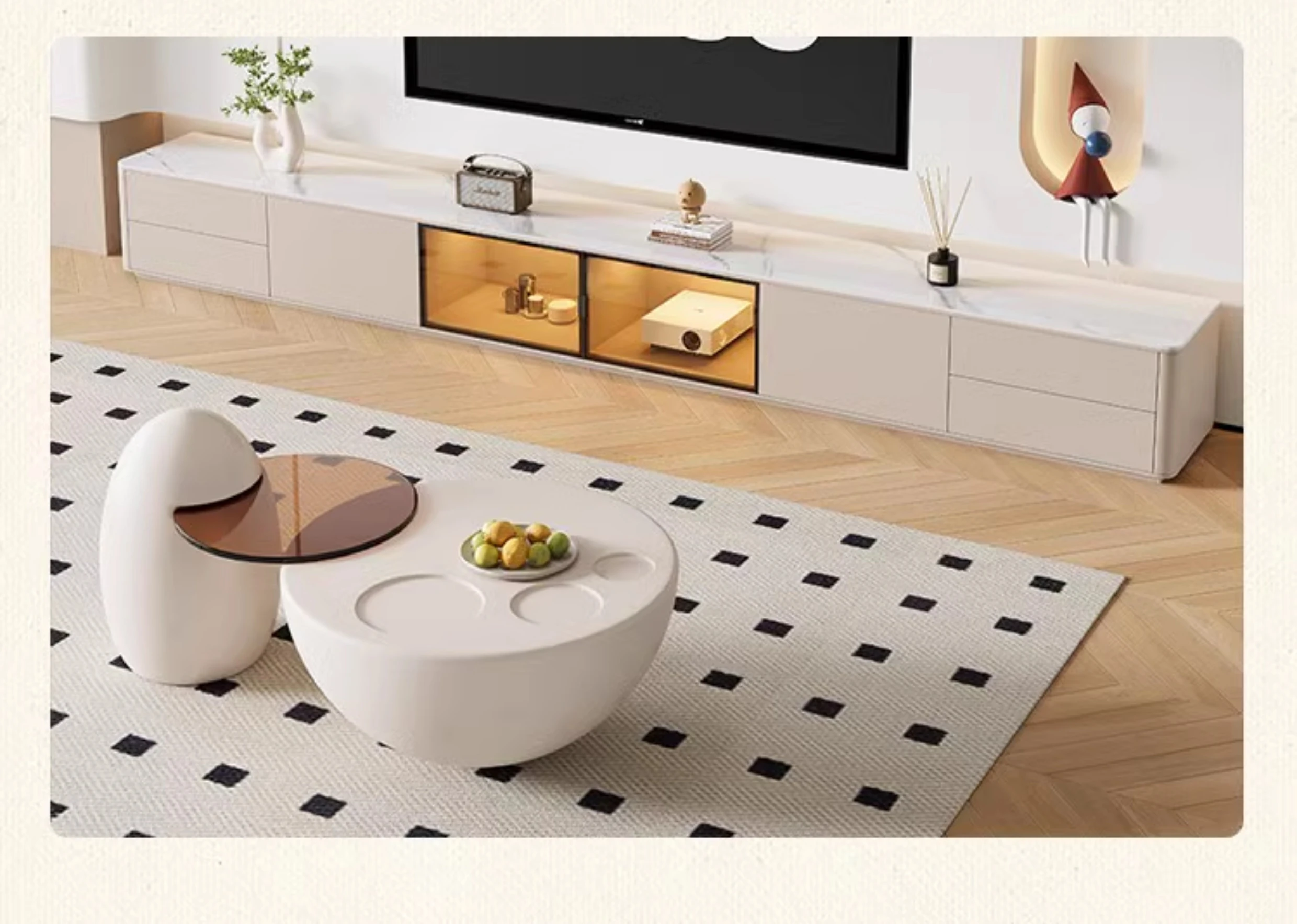 クリーム風の猫爪デザインコーヒーテーブル - 小型リビングにぴったりなラウンド型、洗練されたクリエイティブな軽奢華スタイルのテレビキャビネット!おしゃれで機能的、あなたの部屋を特別な空間に変えます。