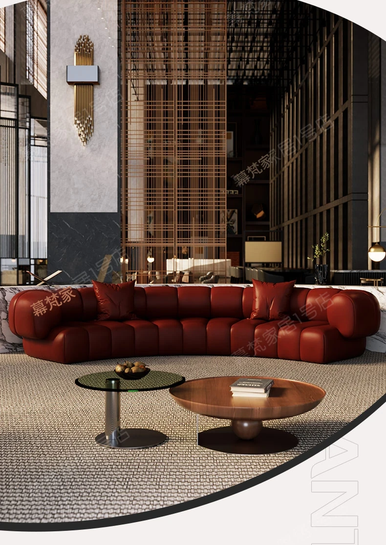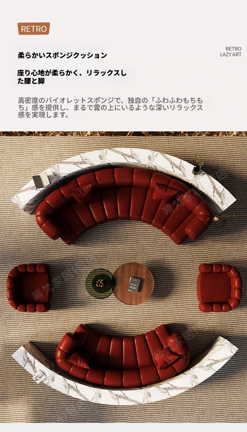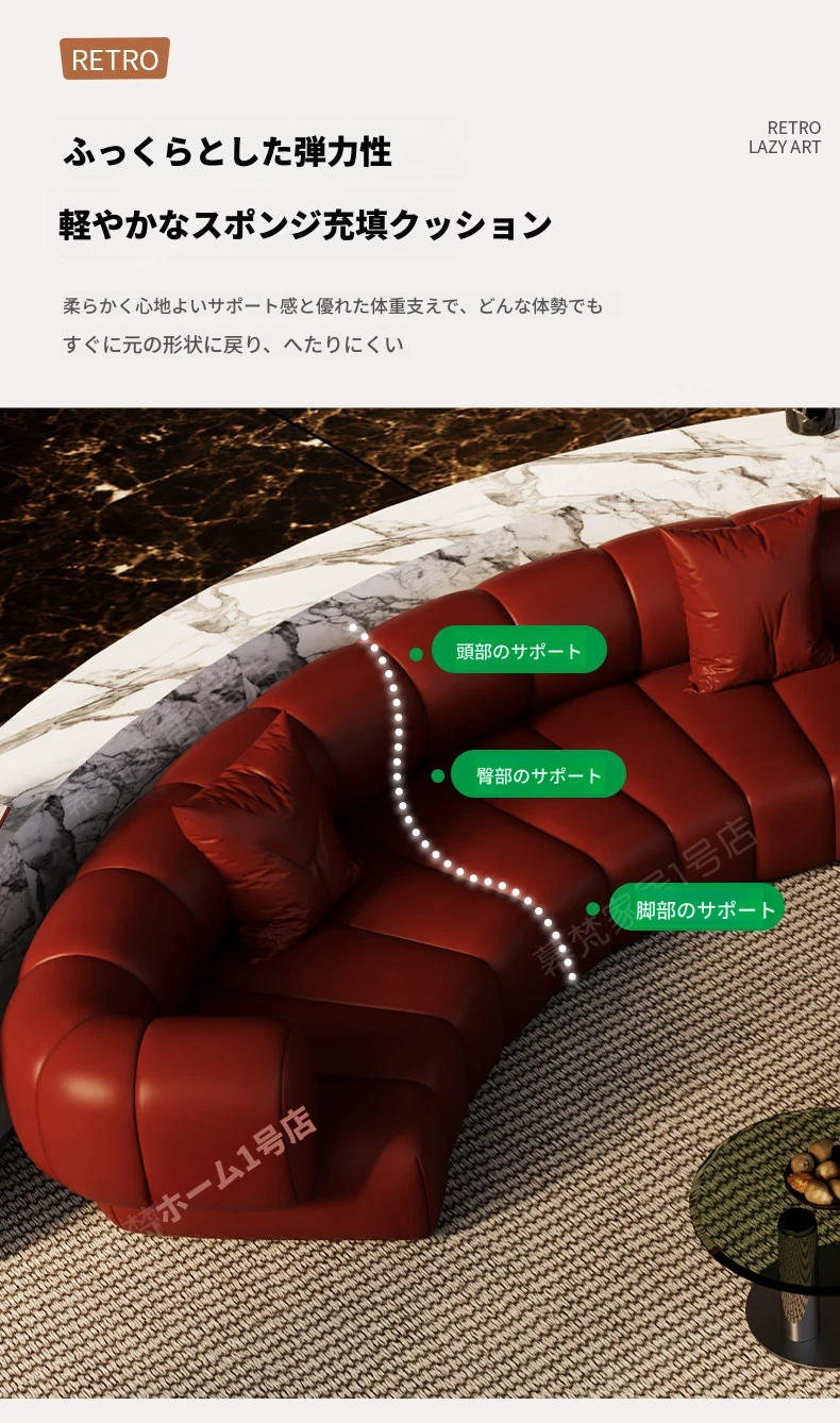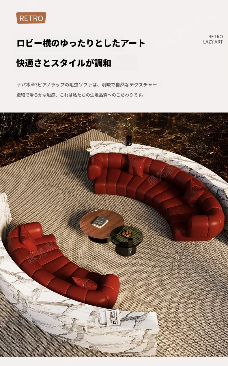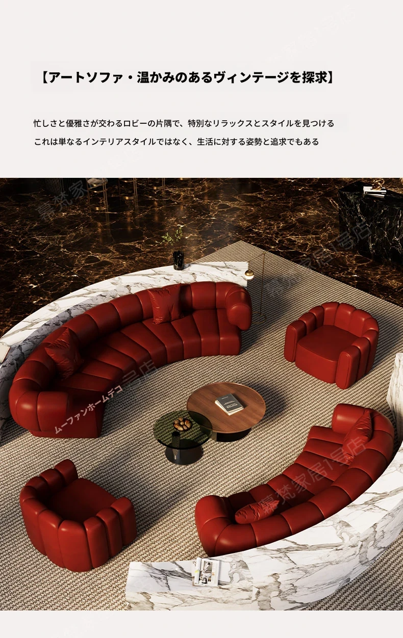 エレガントな半円形ソファー 酒紅色のユニークなデザインで、休憩スペースやオフィス、ホテルのロビーに最適!お客様を魅了する受け入れ空間を演出します。