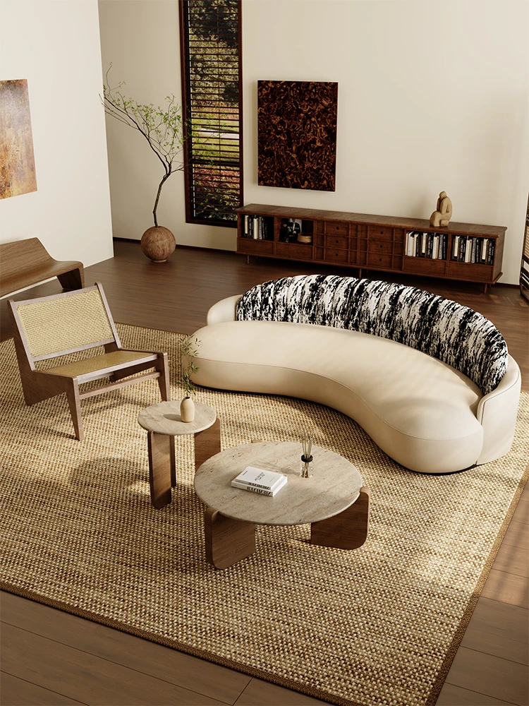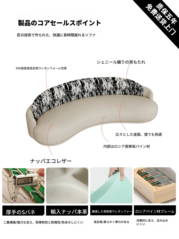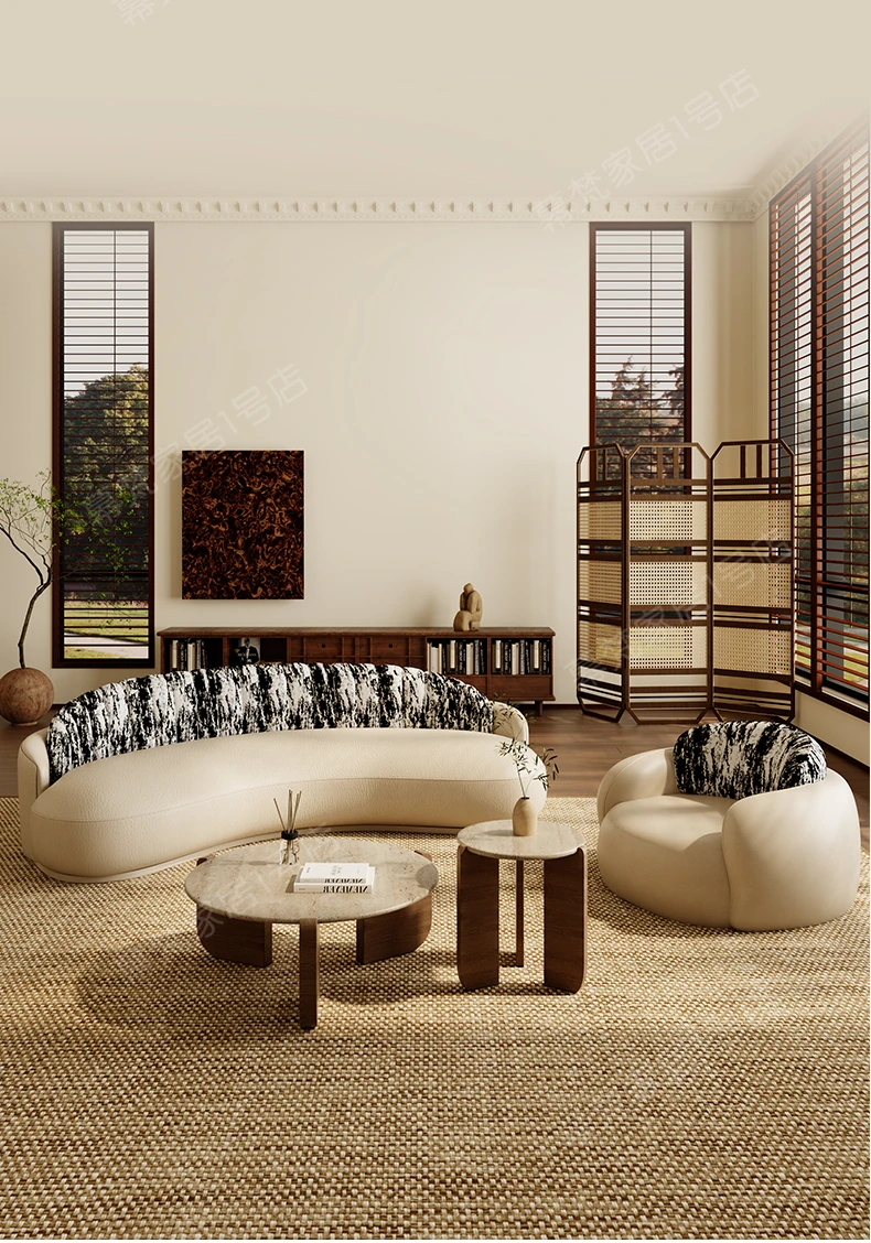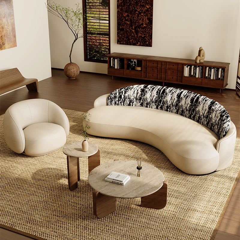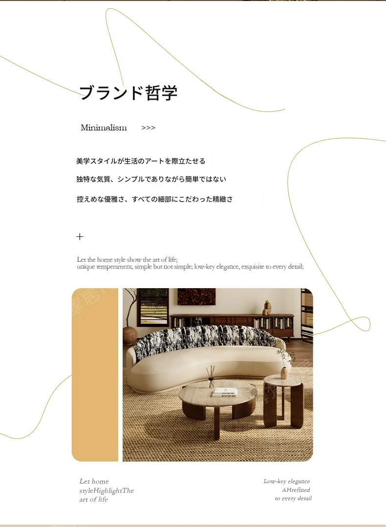 曲線美のユニークなソファ、ラグジュアリーな雰囲気を演出する休憩エリア。ホテルのロビーや民宿、女性服飾店、美容院に最適な洗練されたデザイン。お客様を優雅にお迎えします。