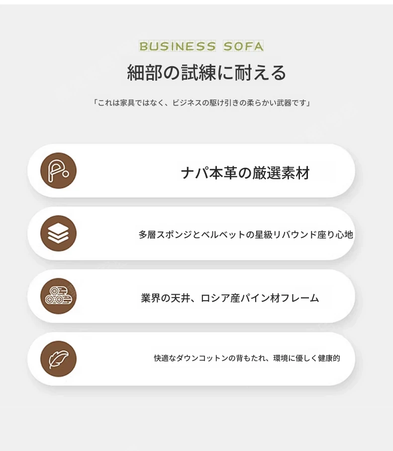 ビジネスオフィス用ソファ|VIP接待や会議室、販売所、商談スペースに最適!ホテルロビーや展示ホール、美容院にもぴったり!快適な座り心地で、訪れる人々を魅了します!