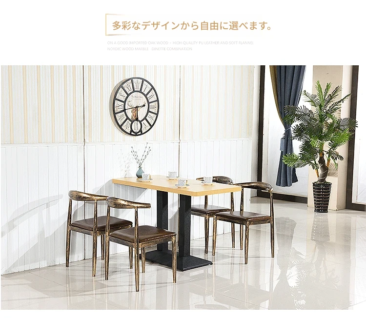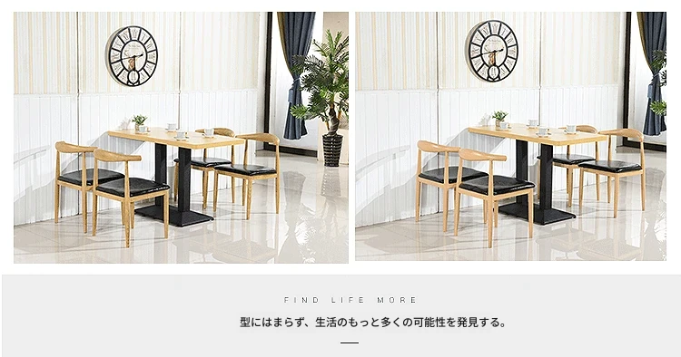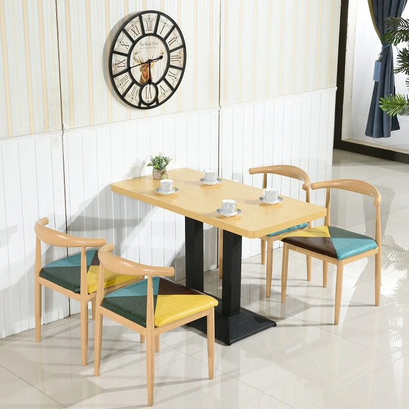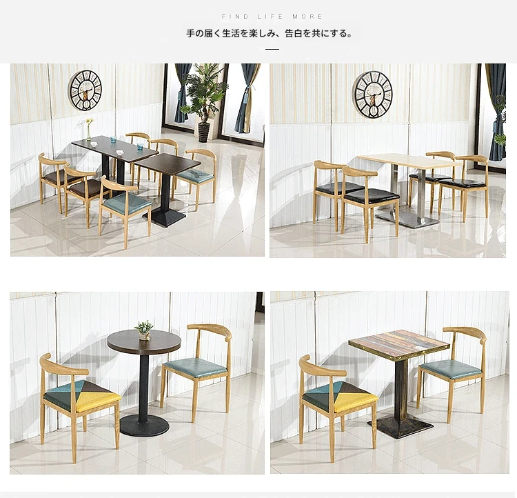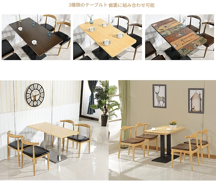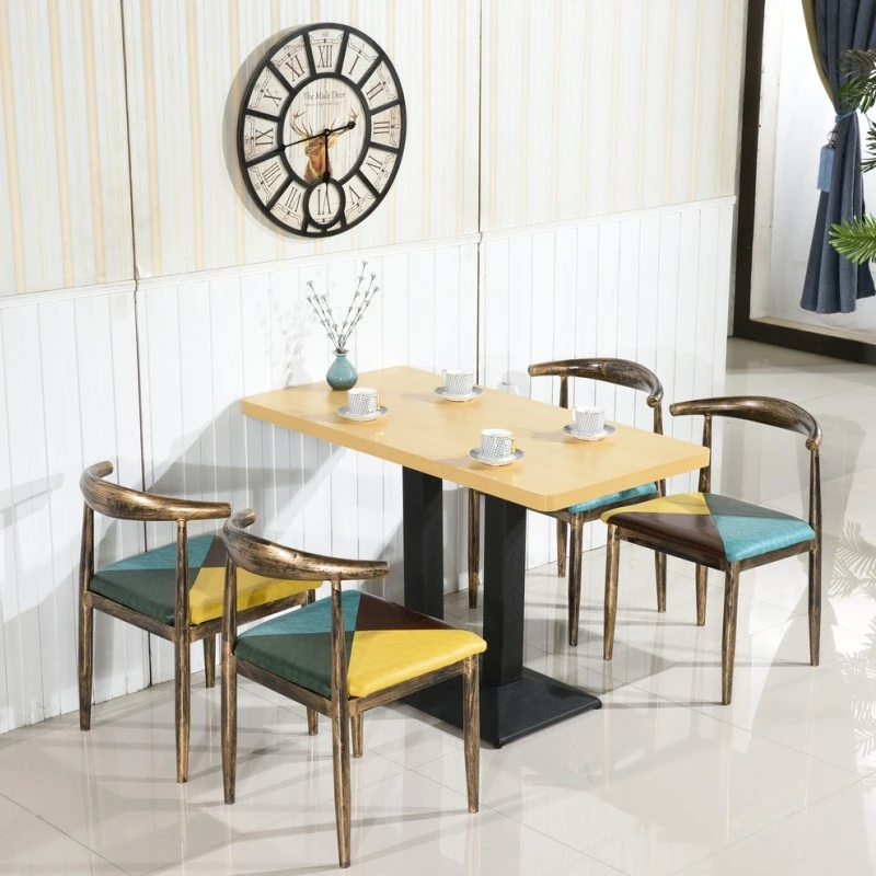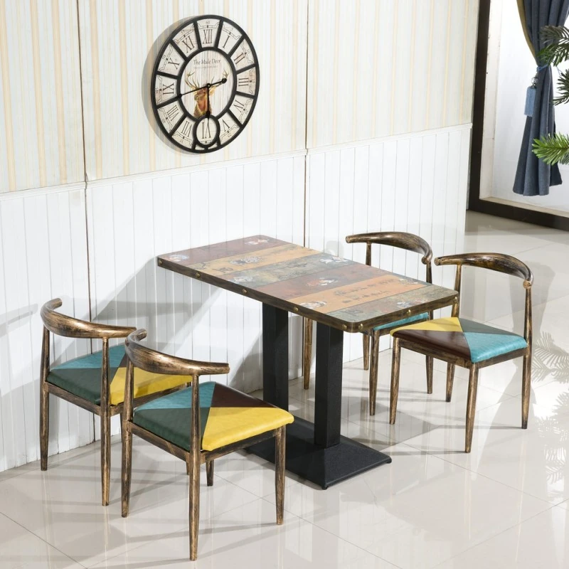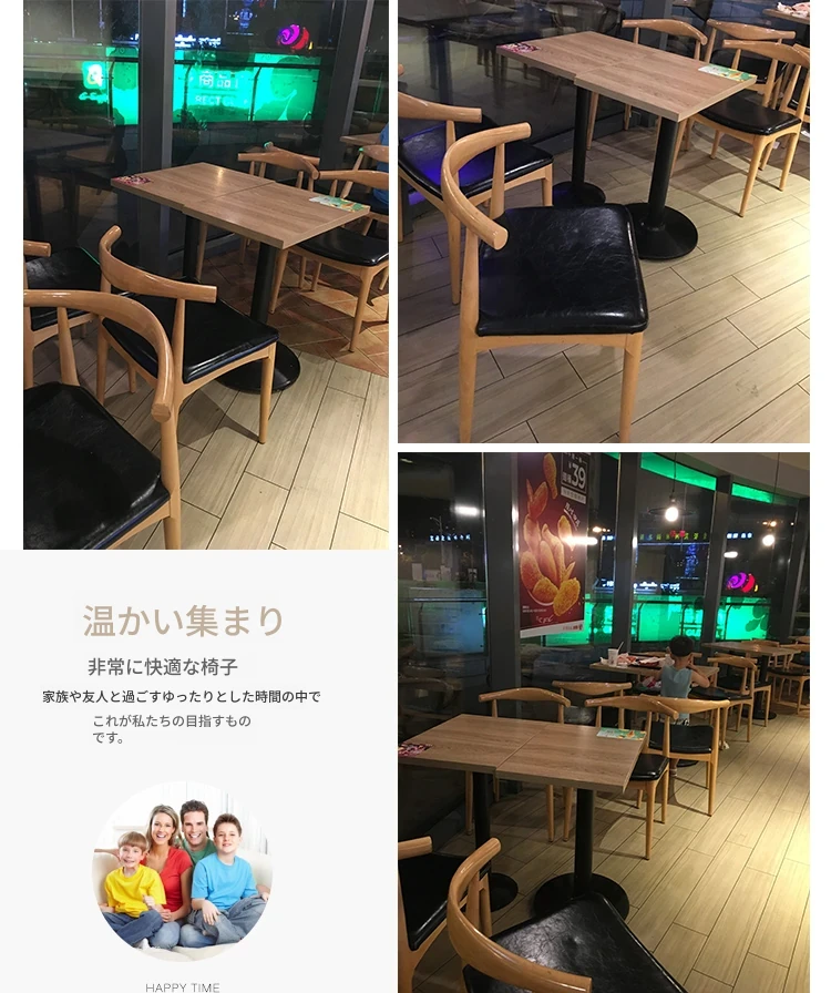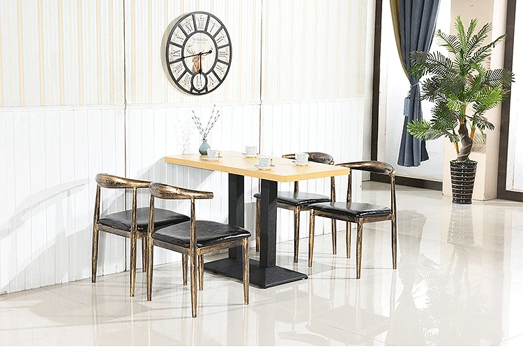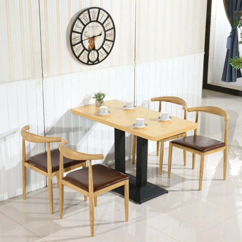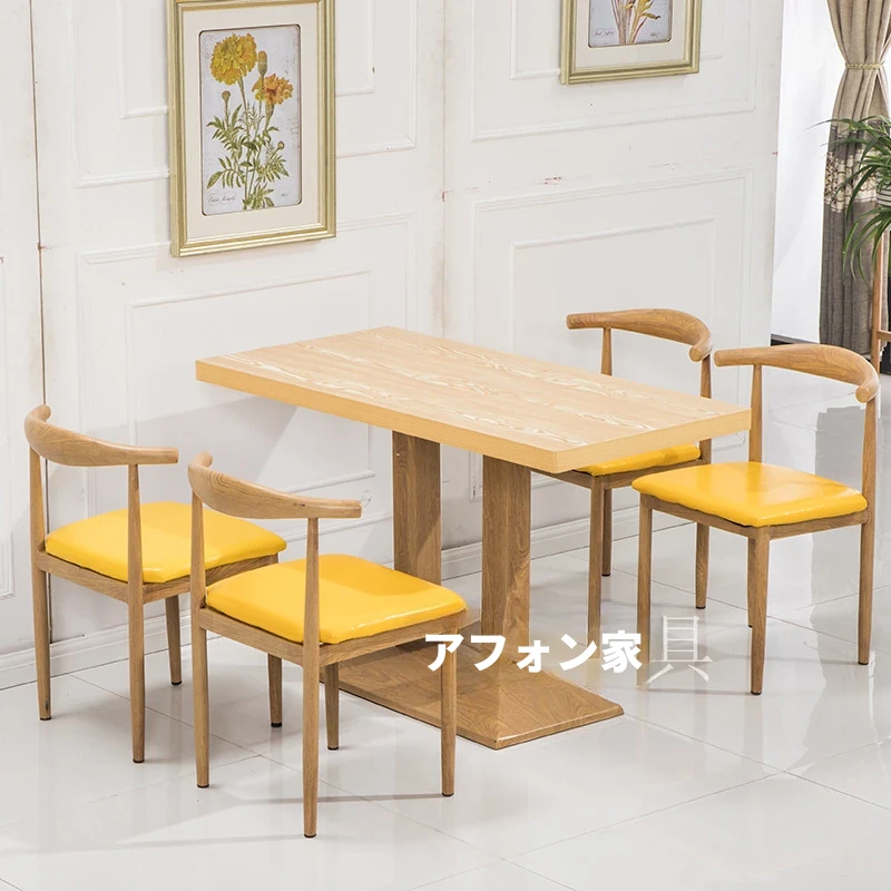 鉄製バッファローチェアの模造木製デザイン、シンプルでスタイリッシュなダイニングテーマ、カフェやレストランに最適!ファーストフードやホットポット、ティーショップにもぴったりなテーブルチェアセット!