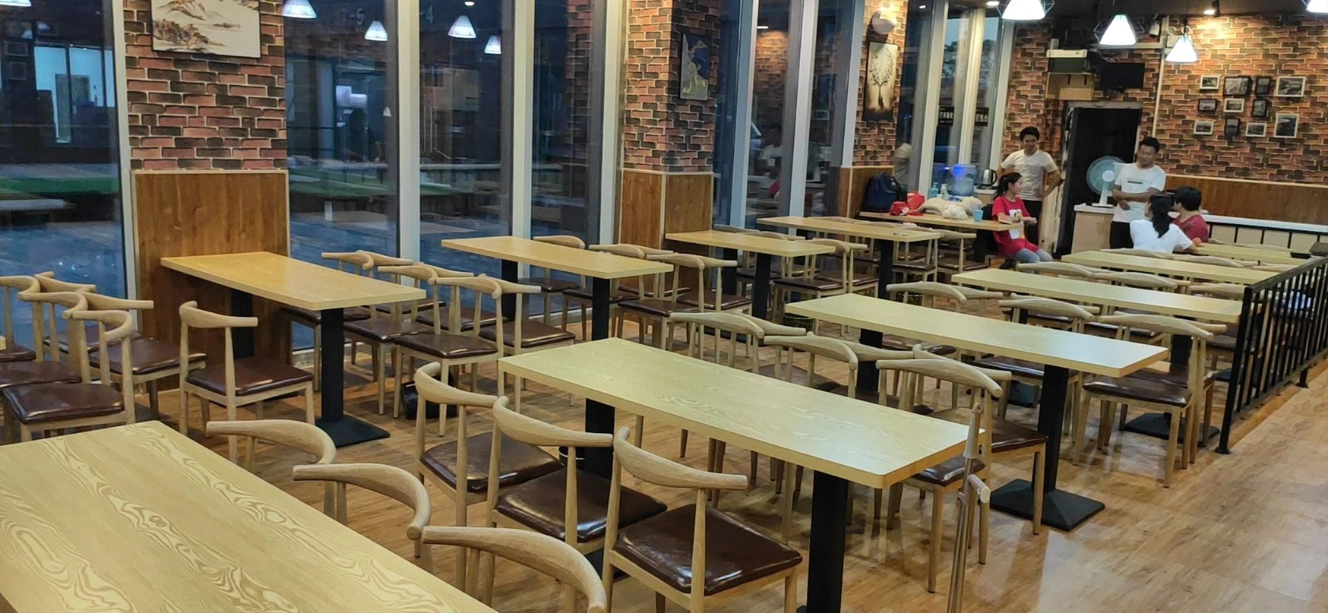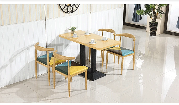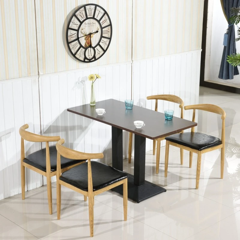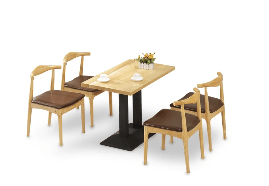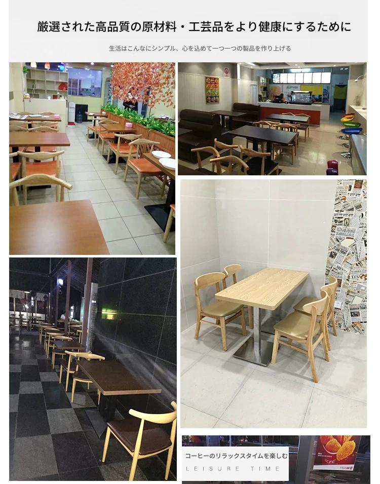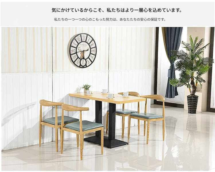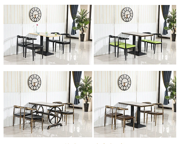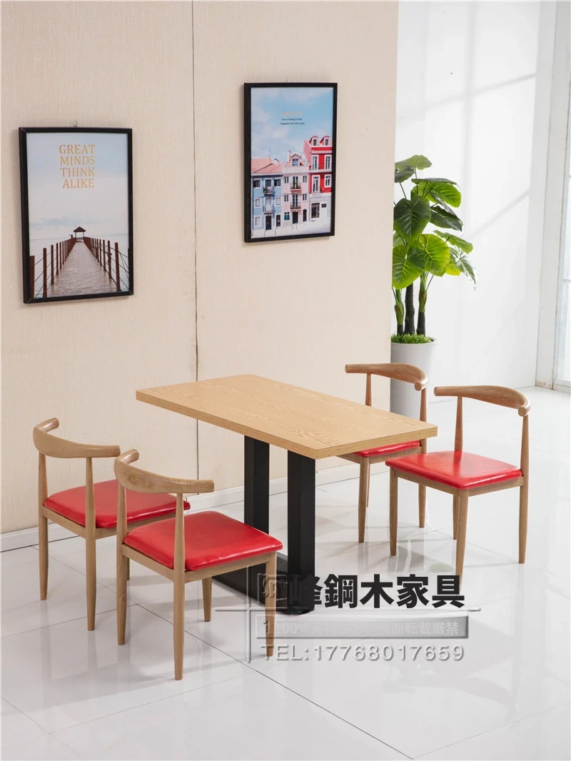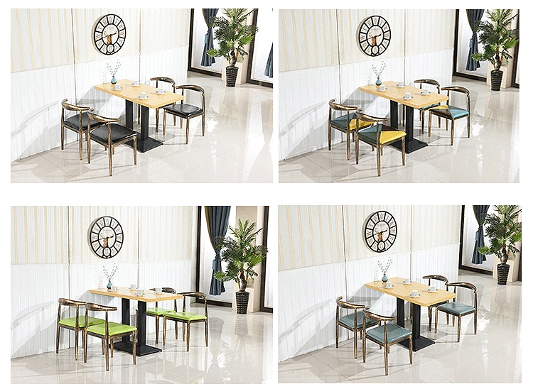 鉄製バッファローチェアの模造木製デザイン、シンプルでスタイリッシュなダイニングテーマ、カフェやレストランに最適!ファーストフードやホットポット、ティーショップにもぴったりなテーブルチェアセット!